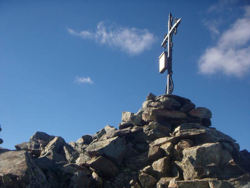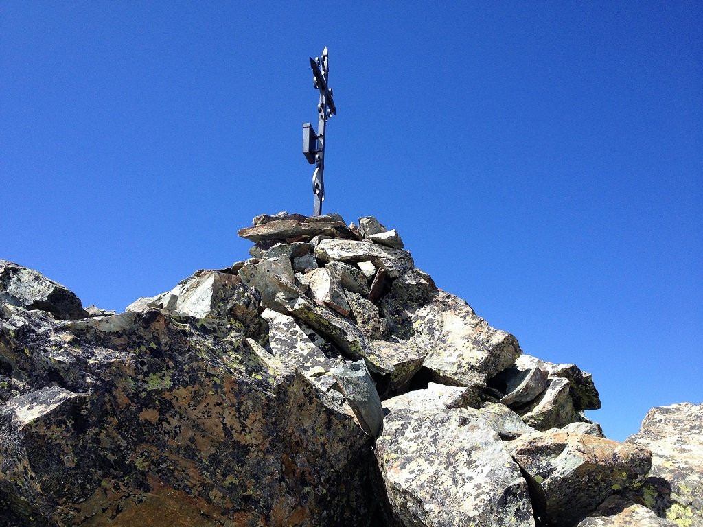 La vetta è bifida e costituita di due cime di altezza praticamente identica, la principale è la cima N/E con la gran croce, per accedere ad essa dalla cima N/E bisogna fare una doppia di 20 metri.