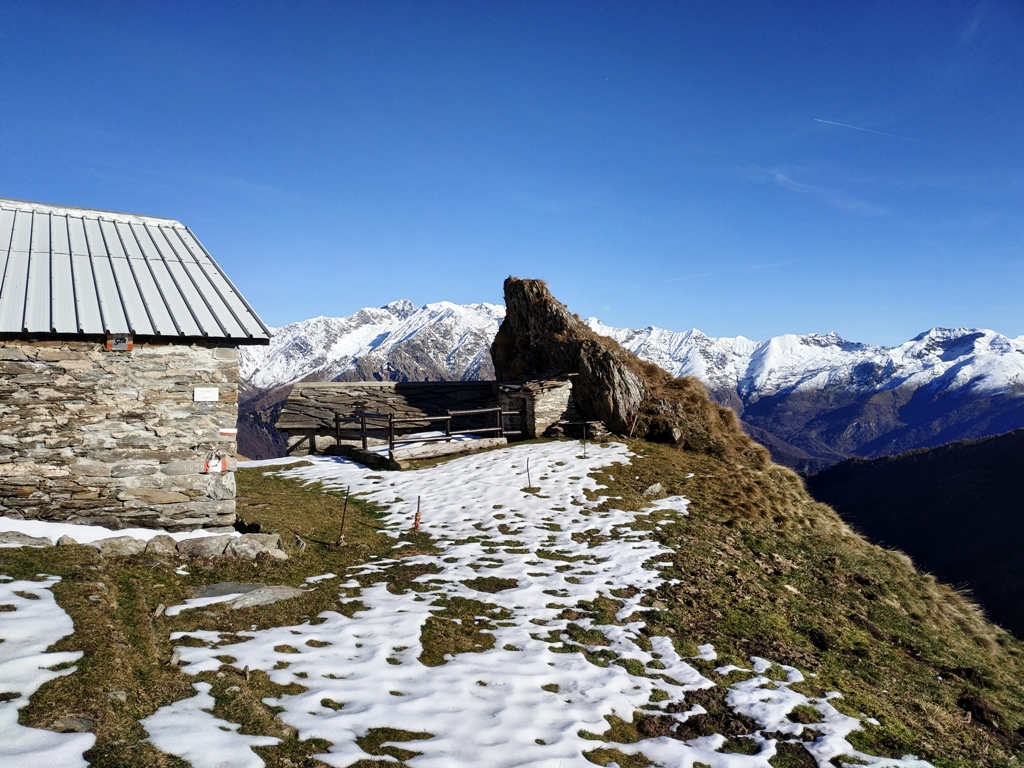 Sentiero pulito e scorrevole fino a quota 1700. Poi qualche chiazza di neve fino ai 30 e più cm presenti sulla dorsale fino in vetta, intonsa da battere. Ghette utili. Giornata limpida e priva di vento, mare di nubi sulla pianura, giornata mite, inversione termica. Nessuno in giro, deserte anche le borgate.