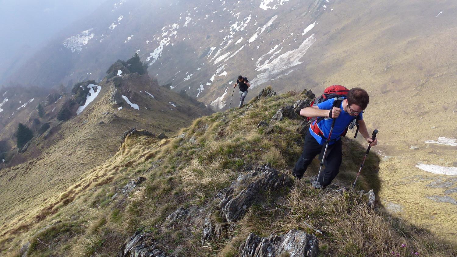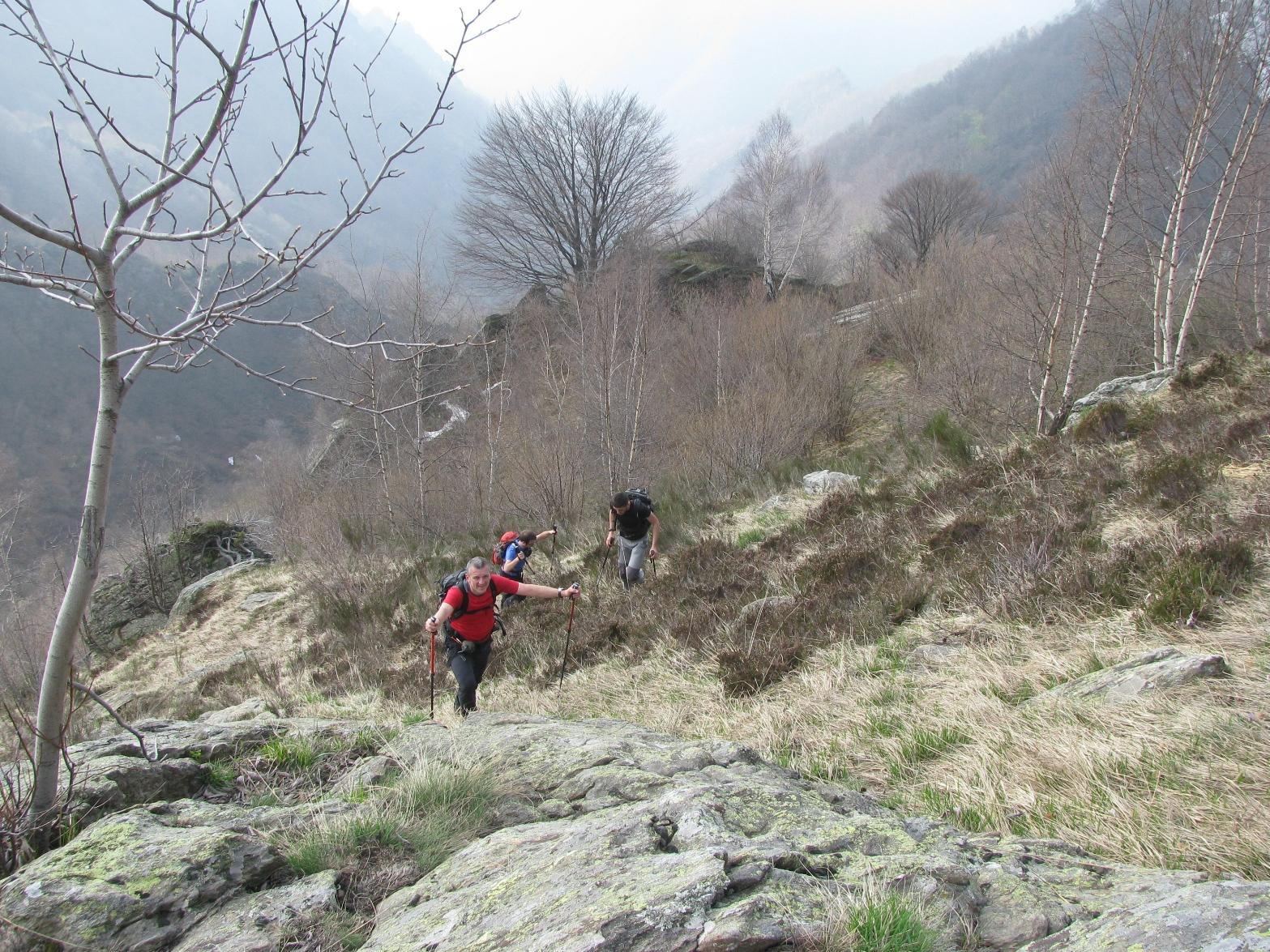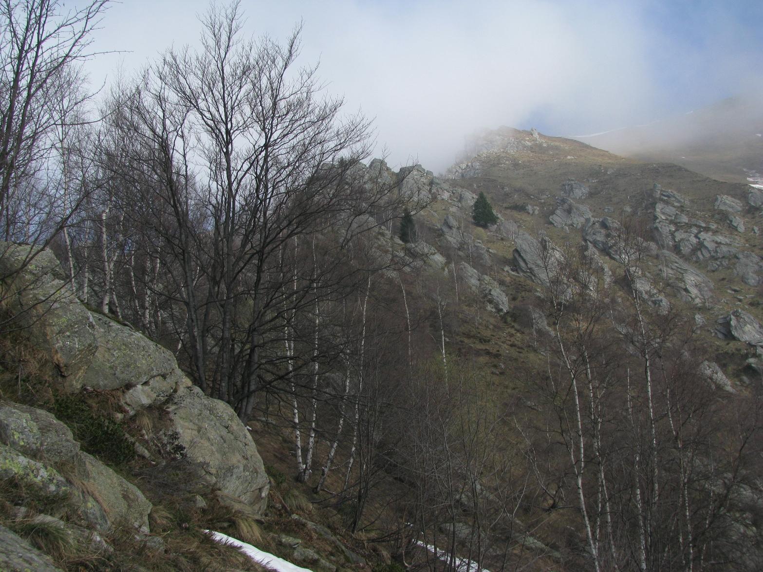 Ora si sale dietro le case di Lazie, si aggira a destra una prima formazione rocciosa, pervenendo ad un canalino compreso fra due altre formazioni rocciose, risalire il canalino dove nella parte finale risulta essere abbastanza ripido, ed in breve si raggiunge la dorsale della cresta; si segue tutta la cresta aggirando qualche spuntone roccioso e si raggiunge una specie di antecima, quota 2000 circa, sulla cresta sud-ovest, denominata Costa Recula sulla carta Mu Val Soana ultima edizione.