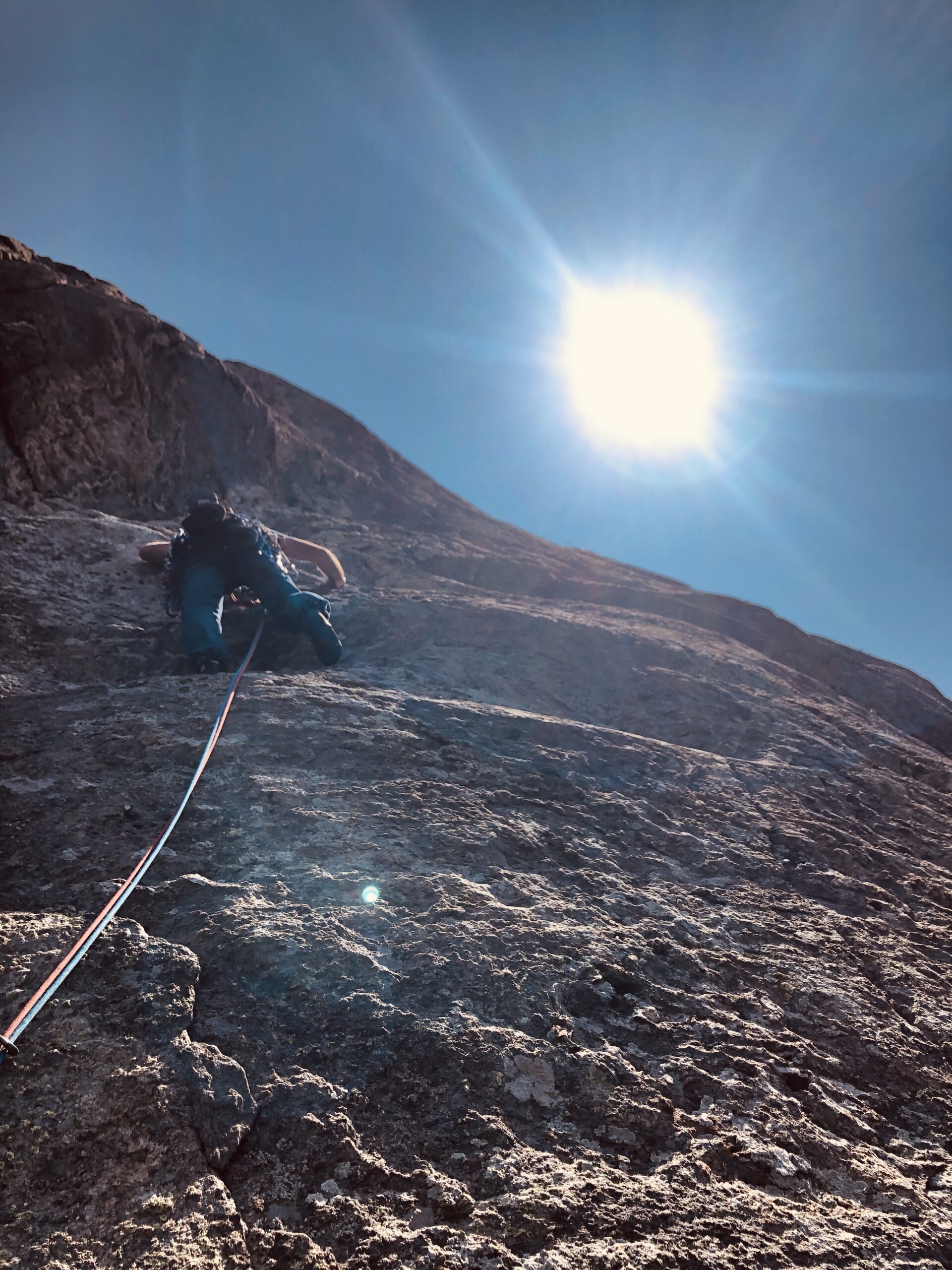 L7 – 5b – Rimontare l’ultima paretina seguendo il diedrino aperto sulla sinistra.