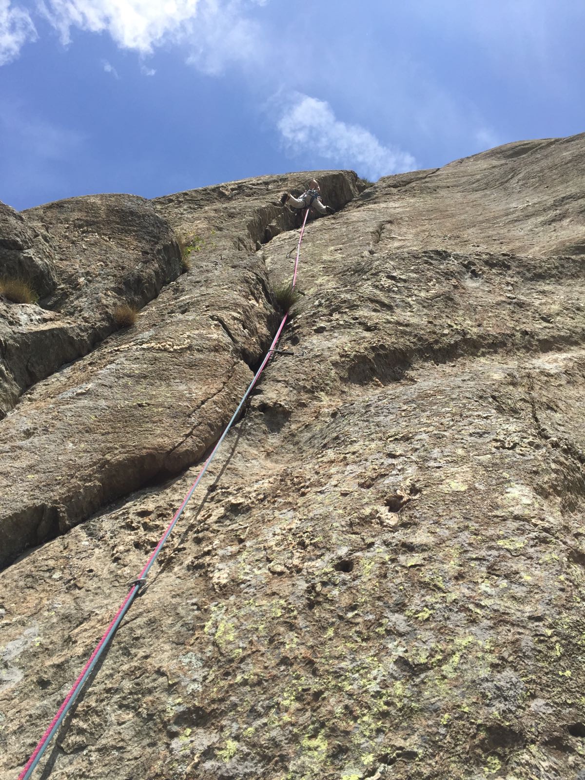 L6 – 5c – Stupendo diedro fessura (eventualmente integrabile con qualche friend).