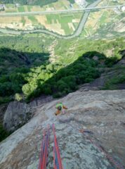 Davvero una bella via, tecnica ed esigente sulle dita con una verticalità continua ma con ottime soste che permettono di riprendersi prima dell’immersione successiva.