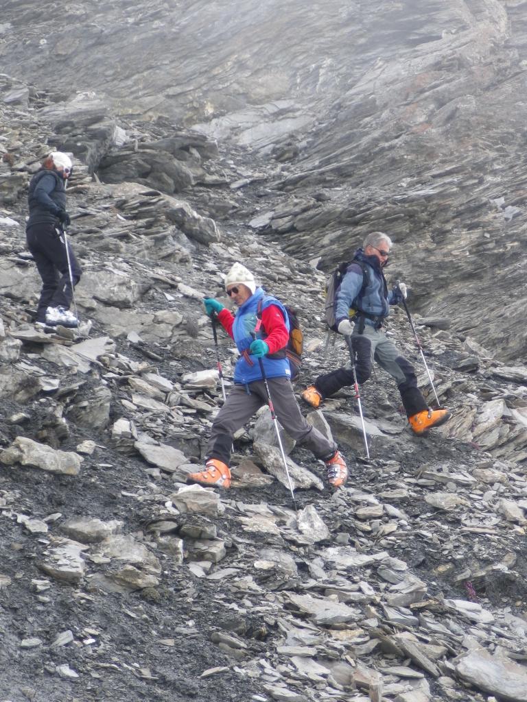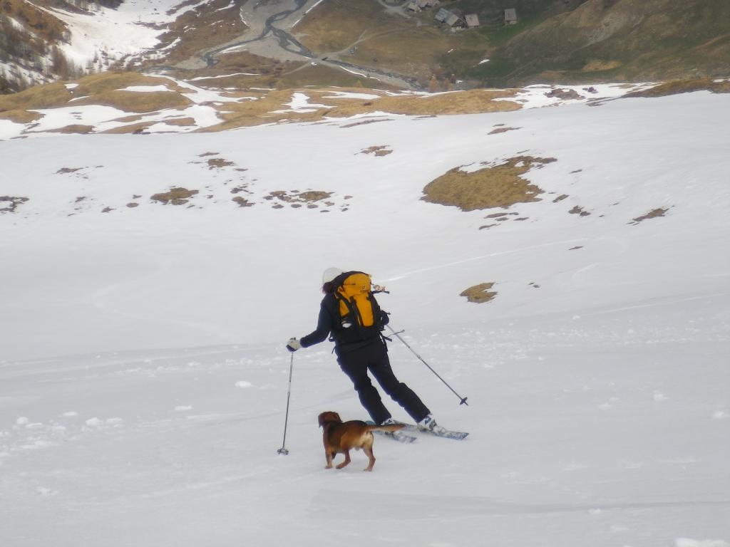 La stagione è avanti di un mese… Sembrava maggio inoltrato, poca neve residua e solo nella zona del Pic Lombard. Non fattibili le altre gite classiche della valle. Comunque bella salita sostenuta su neve dura. Utili i coltelli. Nuvole spesse che hanno oscurato molto il sole. Parte alta della discesa super! Scesi dritti dalla cresta su canale ripido. In basso neve via via più marcia. Bella giornata e bella gita.