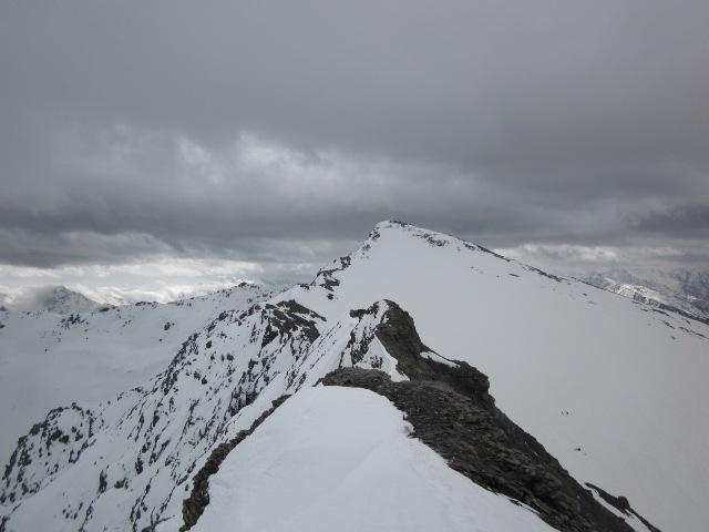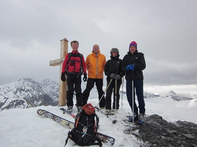 Partenza intorno alle 8, gli sci si portano per circa 15-20 minuti e si calzano a quota 2.160 m circa. Da lì in su nessun problema e innevamento continuo fino a 40 metri dalla cima. Qui si prosegue a piedi fino alla croce di vetta, facendo attenzione al terreno bagnato e a tratti piuttosto scivoloso…