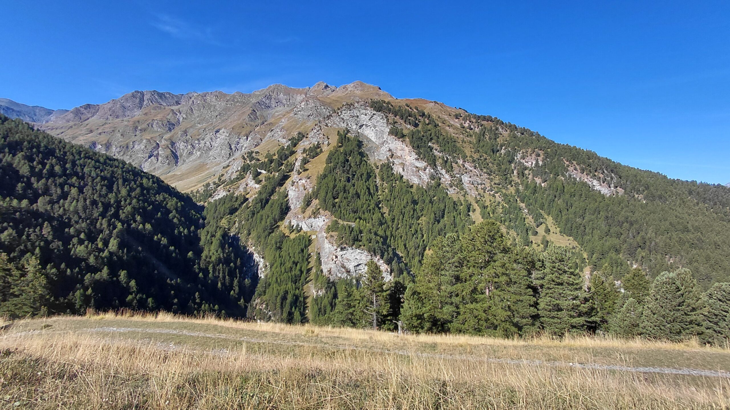 Dopo circa 3km il sentiero attraversa il torrente su una passerella, risale sull’altro versante e si arriva ad un bivio di sentieri (cartelli) dove va non va preso il sentiero che scende per 200m di dislivello ma quello sulla dx che porta alla presa d’acqua (seconda passerella) perdendo solo 100m.