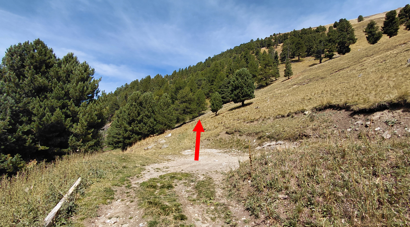 Passata la presa d’acqua si prosegue brevemente su una carrareccia sino a prendere un sentiero non segnalato che con vari tornati porta a quota 2200 dove finisce e si deve salire su ripidi prati con erba alta per circa 200m D+ sino a raggiungere la cresta.