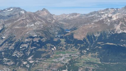 Il sentiero finisce intorno a quota 2200 (ometto) e bisogna salire per circa 200m D+ su un ripidissimo prato con erba alta per arrivare in cresta da dove un evidente sentiero conduce alla parte finale della salita, ovvero i ripidi sfasciumi finali. Qui c’è una traccia e tanti ometti, se si sta attenti non si devono mai mettere le mani a terra se non per la ripidezza. Io ho “perso” un ometto e fatto qualche numero per tornare sulla retta via.