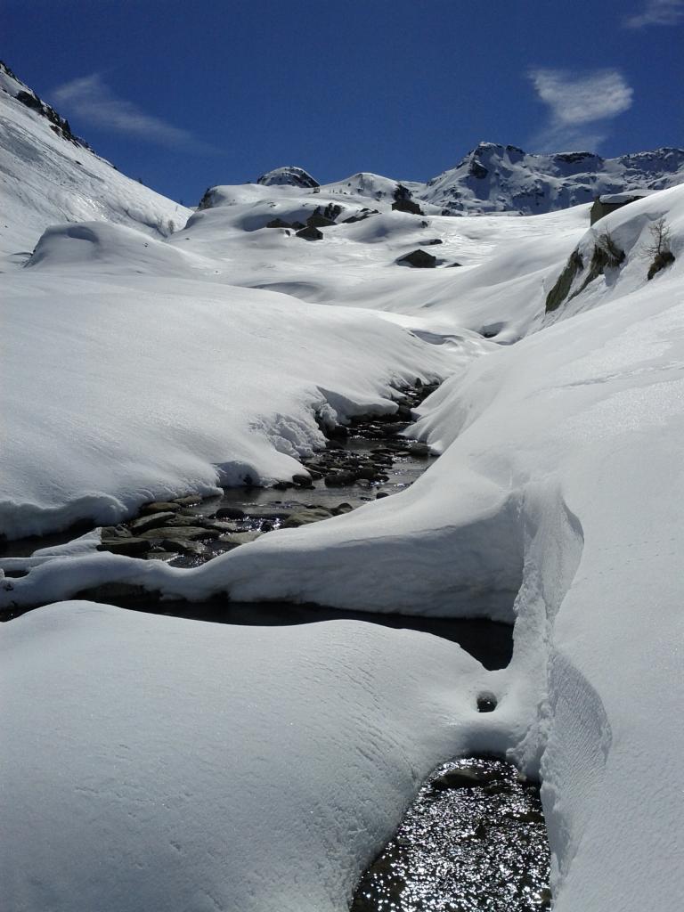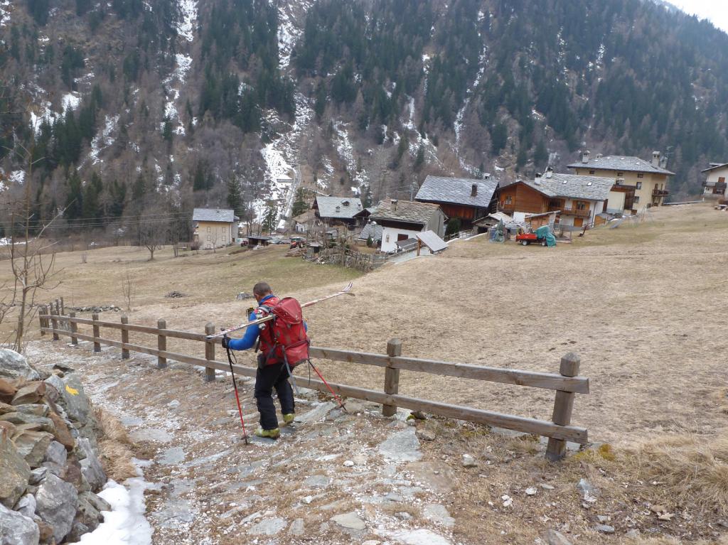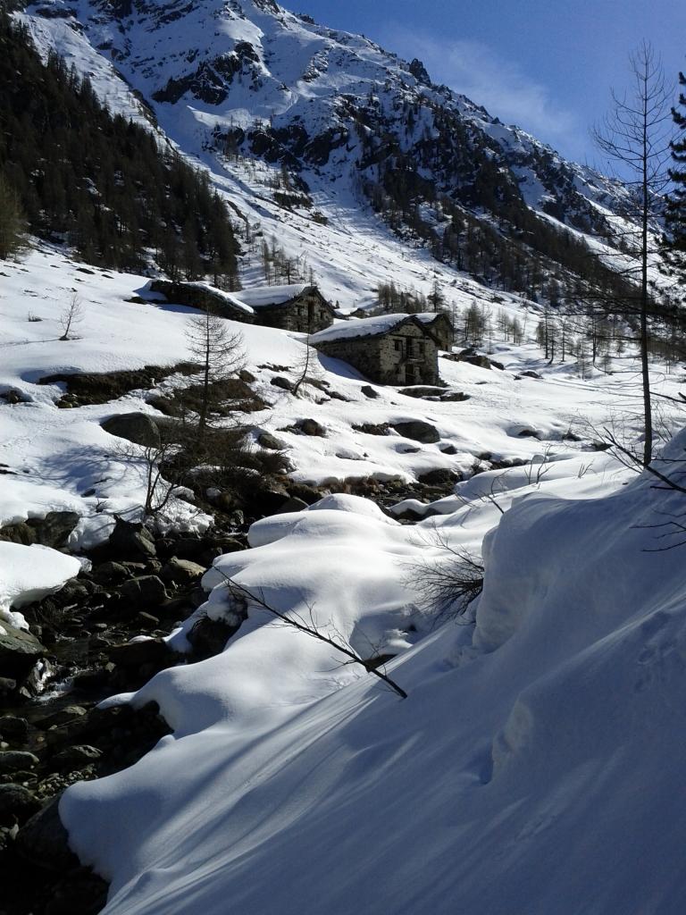 Attraversare il ponte sul torrente, tenere la sinistra orografica fino a raggiungere il ponte successivo, attraversarlo raggiungendo i casolari di Loo di Sotto, 1845 m.