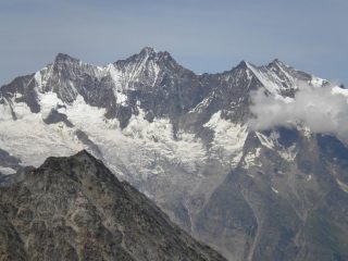 Prima volta in Antrona per questo gran gitone, interessante e completo. Ferrata divertente, sicura e ben studiata, i moschettonaggi sono comodi e sui punti più difficili c’è sempre un piolo. Consigliati i guanti. Per l’accesso attualmente non servono i ramponi, un nevaio un pò ripido porta all’attacco ma ci sono ottime peste, in caso di neve dura comunque meglio averli. Salita al Loranco nel complesso divertente: nella prima parte qualche ometto indica dove aggirare i gendarmi sulla cresta, gli ultimi metri sono belli dritti. L’uscita è facile anche se dritta, ci sono molti appigli, l’unica perplessità su qualche sassone che non si capisce come stia su.. Nebbie sul lato italiano da dopo il bivacco durante la salita, splendido sul lato svizzero. In giornata è lunga ma pian piano si fa, 5h bundus dal park. Nessuno in giro se non qualcuno che (pur non salendo oltre) ha pensato bene di ciularmi i bastoni da trek che avevo lasciato nella terminale! vaff..