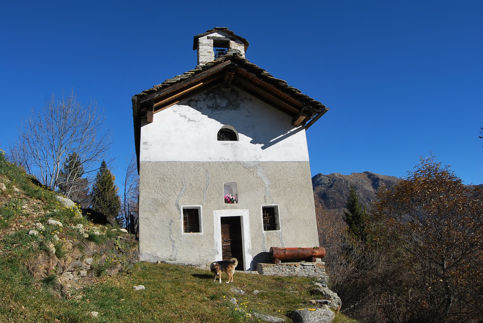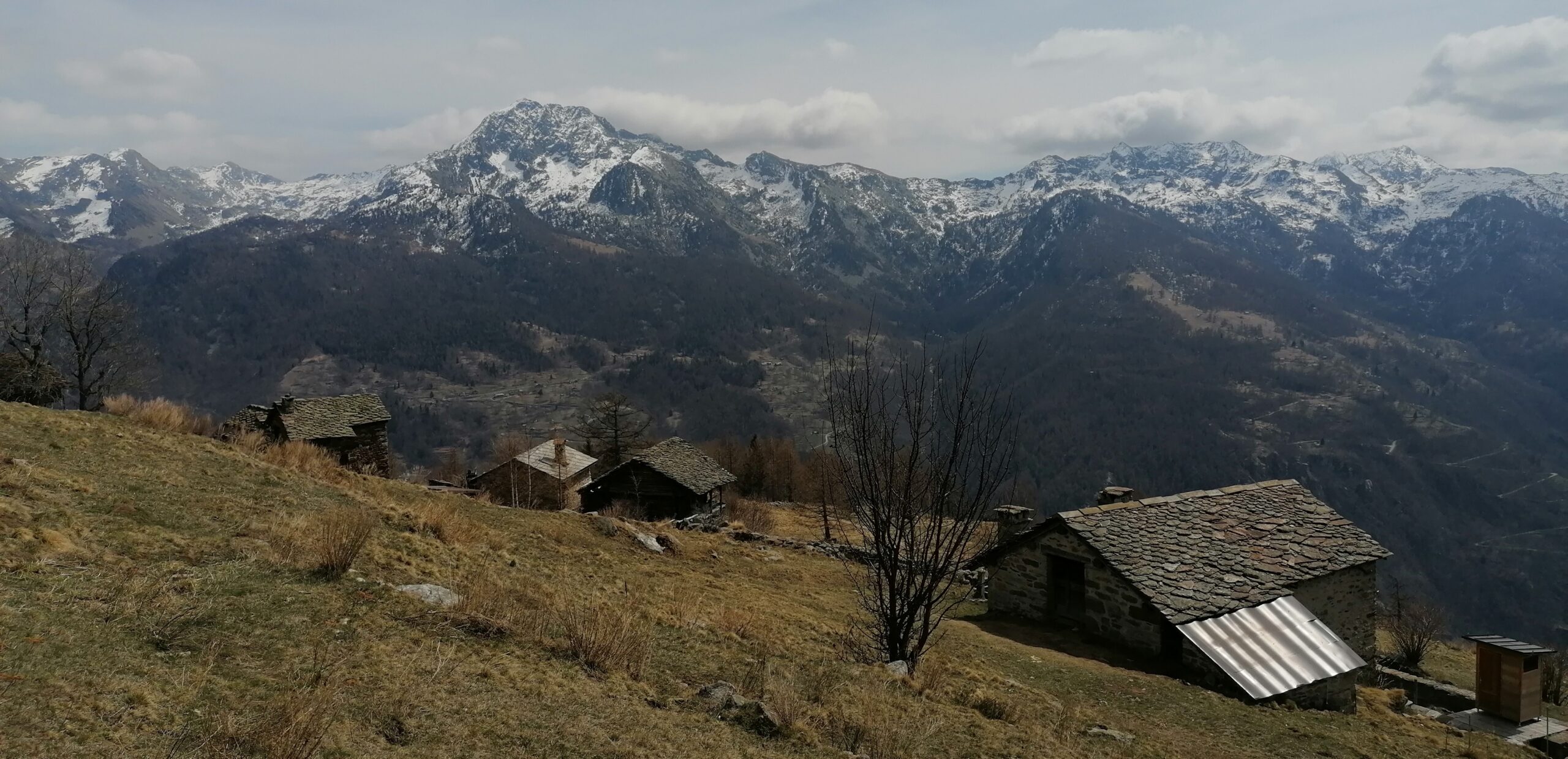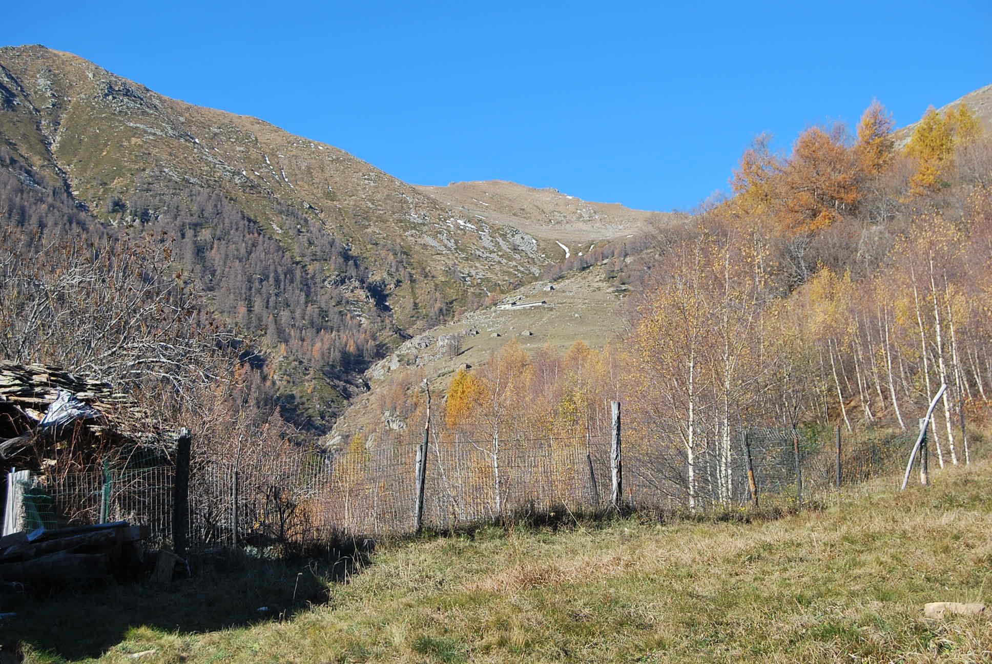 Si prosegue a monte di esso, per tracce oppure seguendo la strada sterrata che toccate altre baite abbandonate termina poco sopra nei pressi di una presa dell’acquedotto.