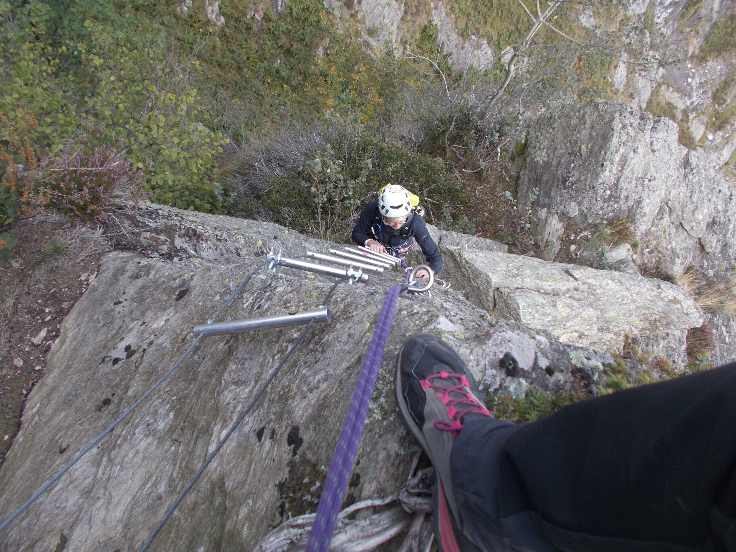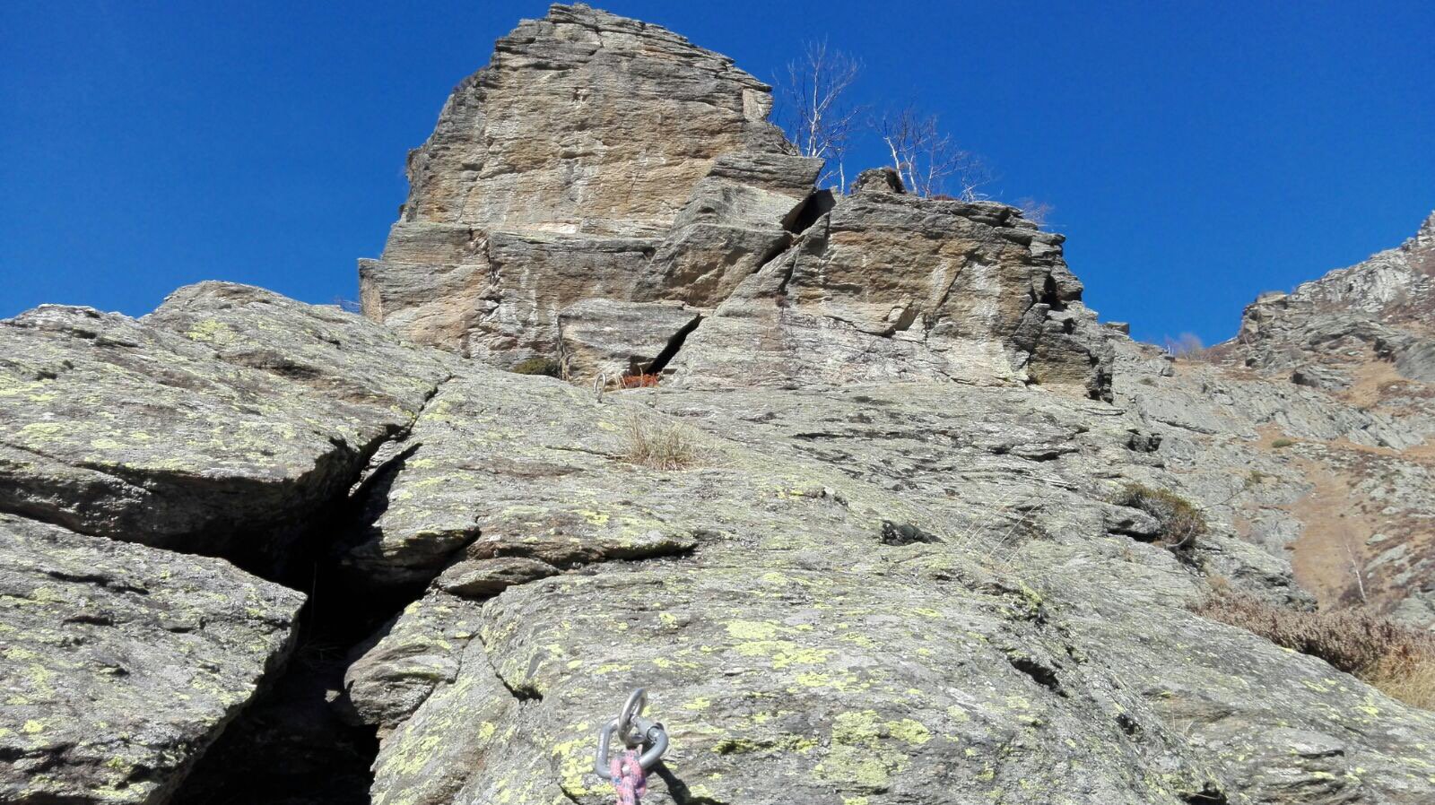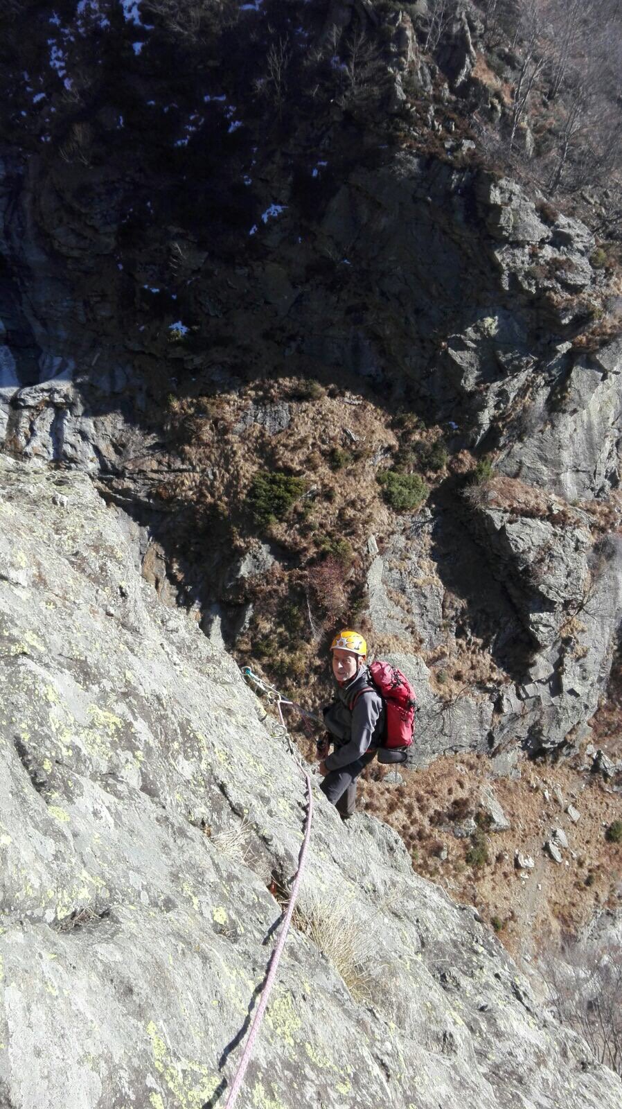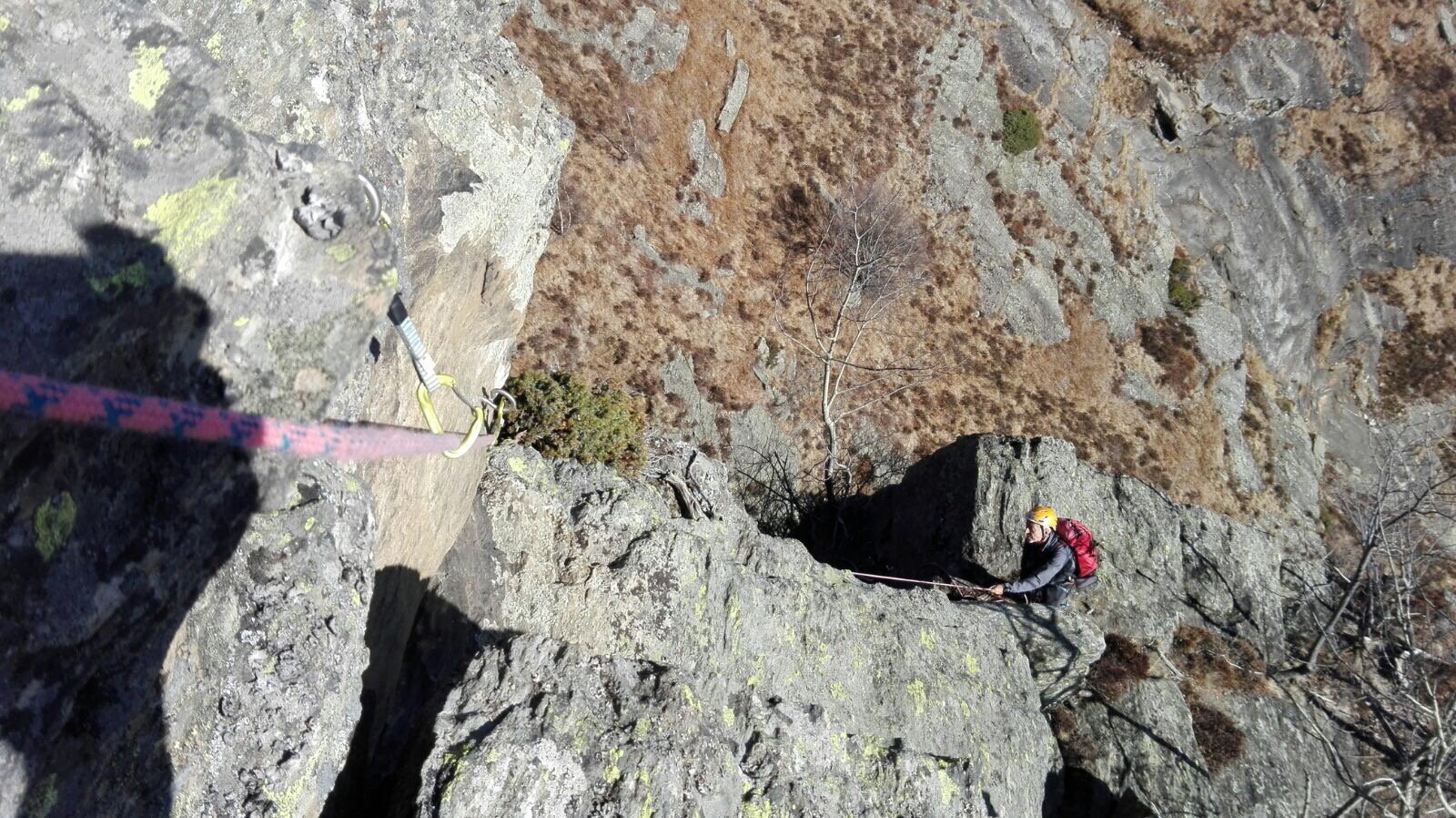 Materiale necessario: corda singola da min 20 m diametro max 10mm, imbragatura, casco, moschettoni a ghiera, discensore per la discesa.
