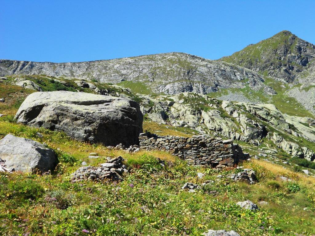 Dalla base della Losa si scende obliquando verso Alpe Servin (m. 1998, alcune baite ormai diroccate), percorso molto disagevole tra pietraie, rododendri e grandi estensioni di mirtilli, rare le tracce dell’antico sentiero.