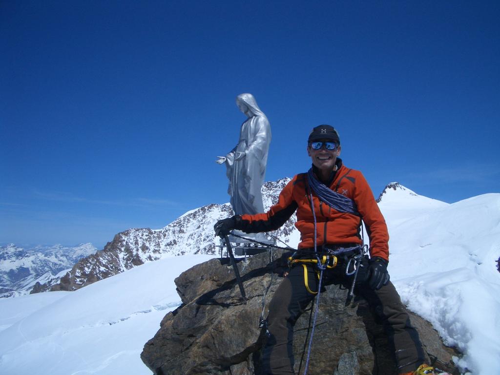 Saliti con la prima funivia fino a punta indren. Giornata molto calda. In salita passati per il Cristo delle vette, e poi saliti sul Corno Nero. Pendio finale con picca e ramponi. In discesa neve buona fino al Mantova,occhio ai crepacci!, poi neve pesante fino alla macchina.