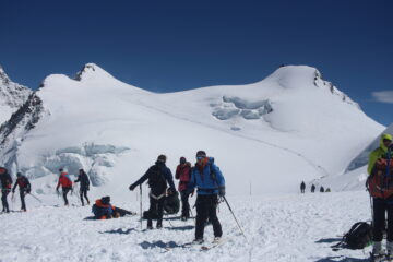 Sceso dal Col del Lys ero cotto, grazie a Lucia ho ricaricato le batterie, siamo risaliti al Colle e proseguito con gli sci verso la Ludwigshohe, ultimo pezzo con ramponi e picca.