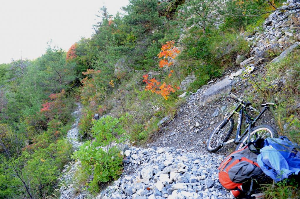 Le opzioni di deiscesa verso Fontan e Saorge sono 3 … la prima è la discesa sul Colle di Peiremont ciclabile al 80% circa prevalentemente su erba … la seconda nella valle della Basse d’Anan scendendo a Saorge ciclabile al 70% prevalentemente su terreno duro e roccioso e la terza è nel vallone de Lugo e de La Peve quasi tutta ciclabile su terreno duro.