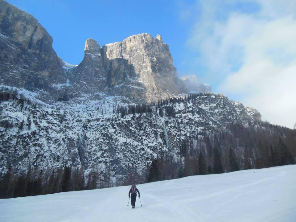 Accesso dal ristorante Mesoles,dopo pochi tornanti, lasciato Colfosco, direzione Passo Gardena. Accesso ben tracciato. L1: 35m, 90°, poi 85°-80°,ma dipende dalla linea scelta…sosta a dx su fix e catena. L2: 30m, 85°-80°, sosta a dx su fix e catena. L3: 20m, muretto verticale a 90°, poi uscita facile… sosta a dx su fix e catena. Discesa con una doppia da 20m alla penultima sosta e poi con una doppia da 60m alla base della cascata.