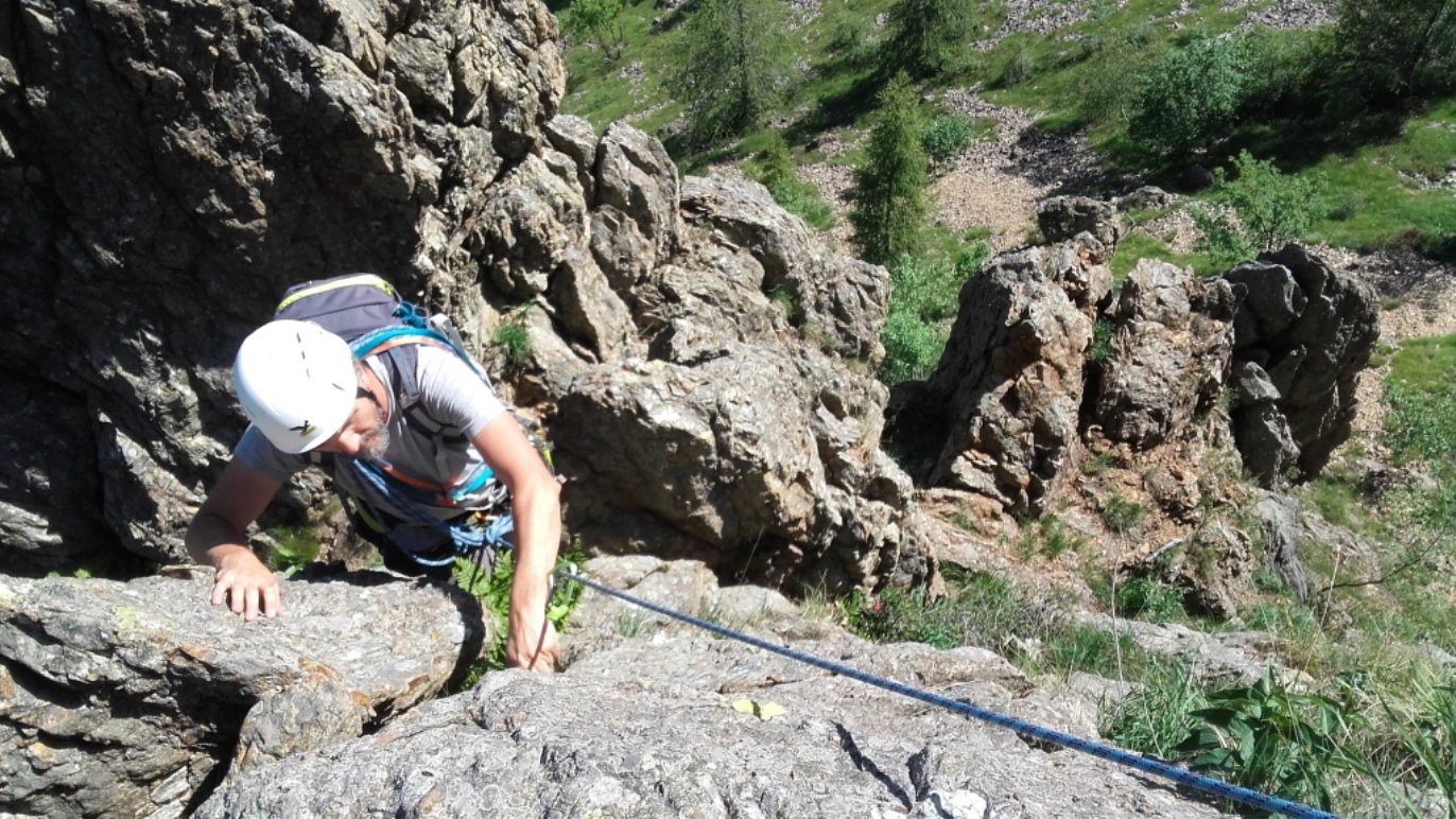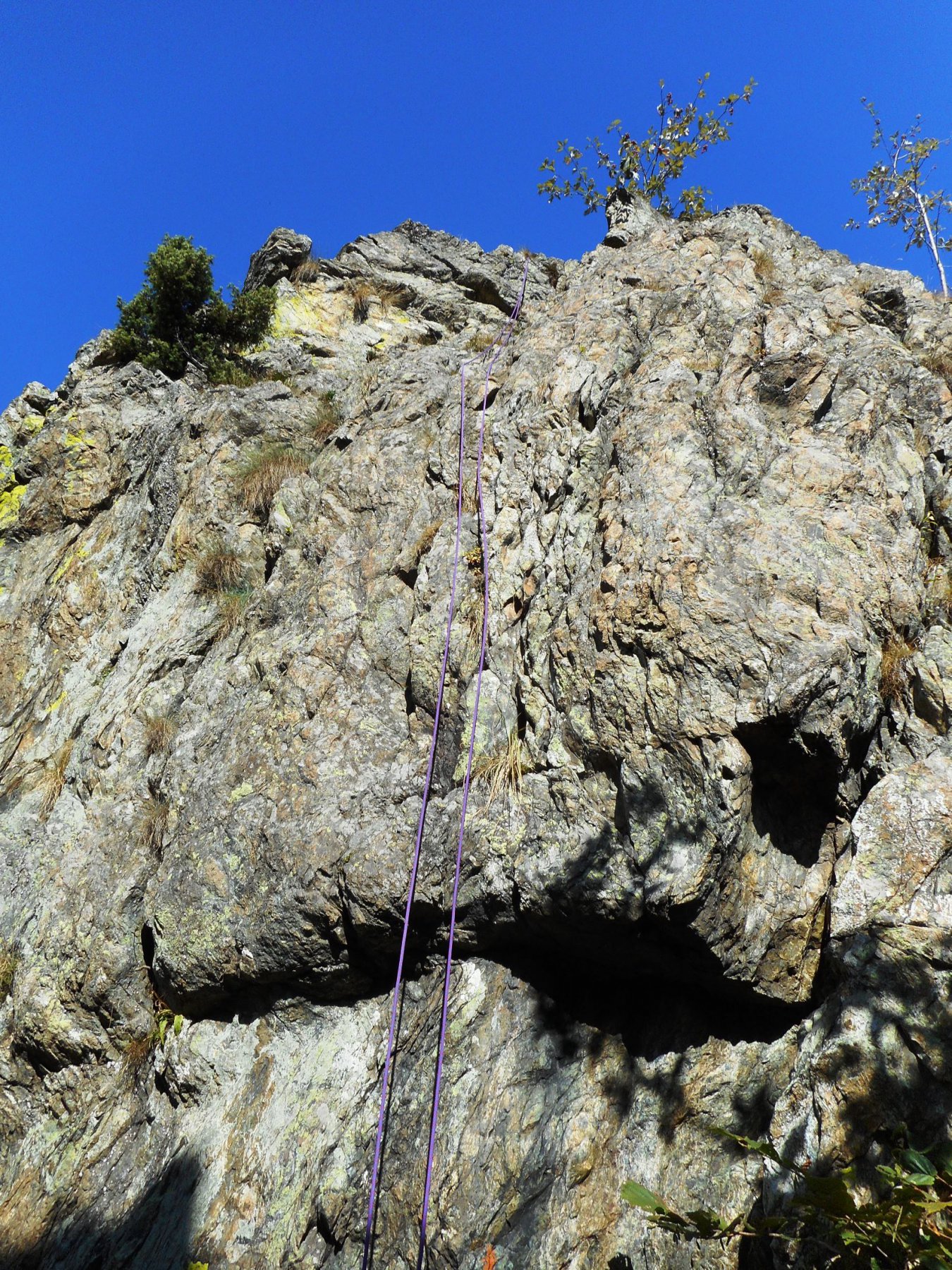 Difficoltà più elevate con roccia umida o bagnata che diventa estremamente viscida. Anche con roccia asciutta i passaggi obbligati sono molto levigati.