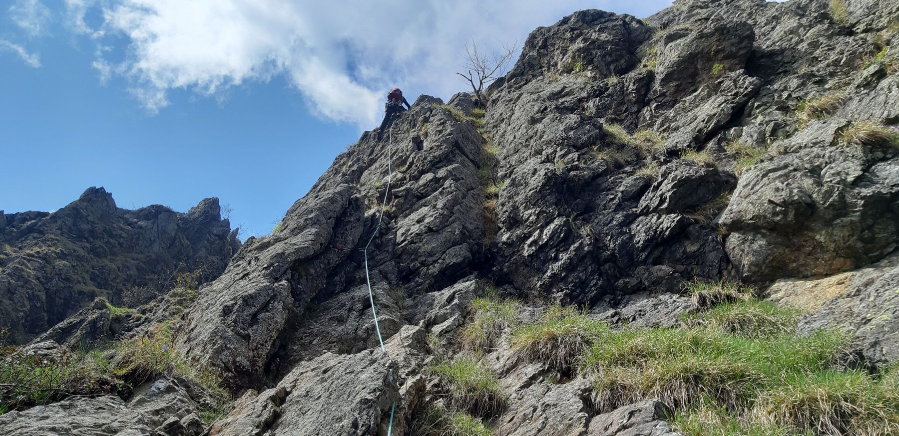 Dall’attacco 2-2.30h – dislivello 300m - difficoltà III (“da palestra”) molto discontinuo.