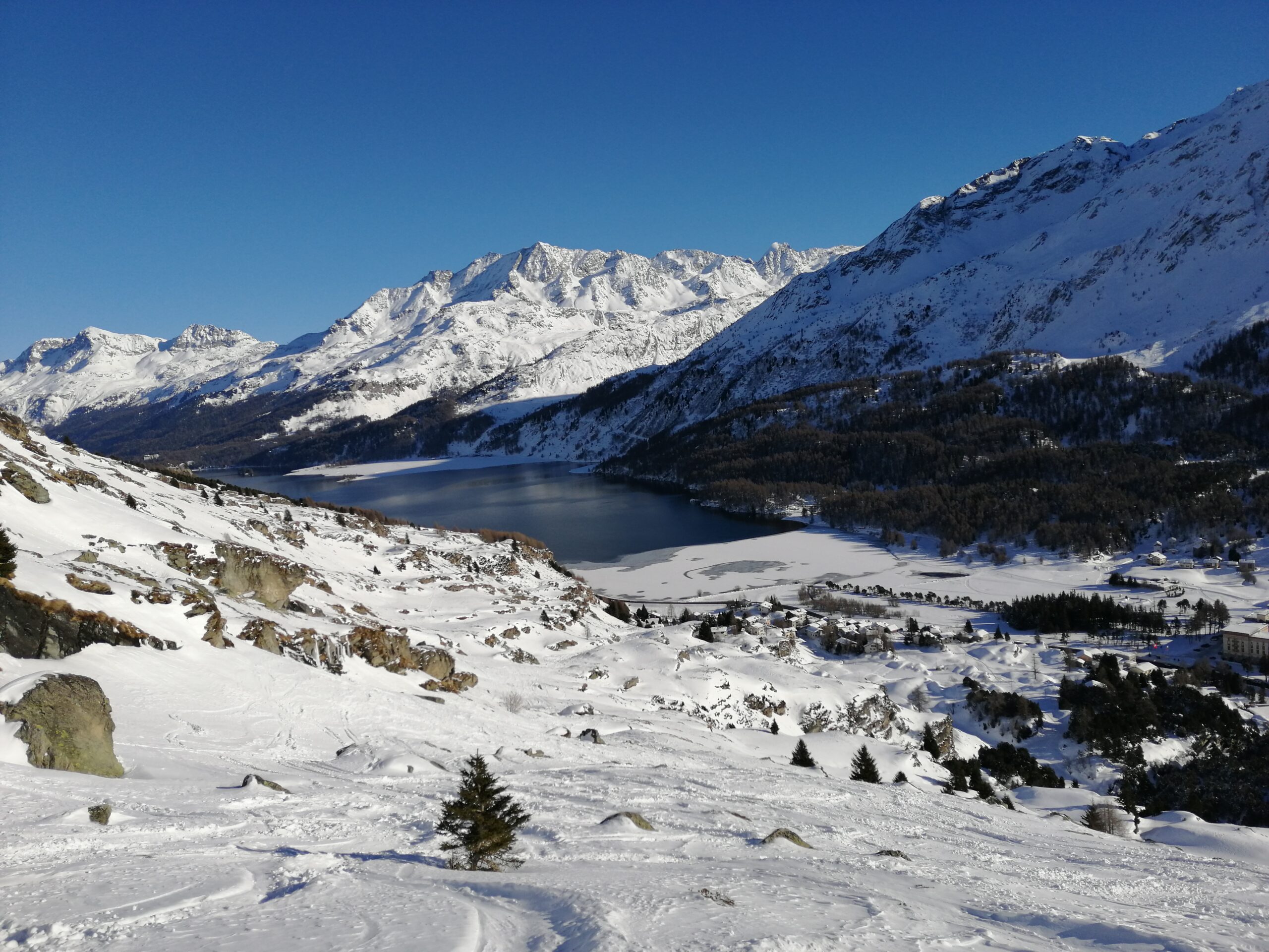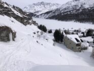 dal passo Maloja si prosegue fino al parcheggino sulla sin. in loc. Cadlagh, proprio dove inizia il Lej da Segl. si imbocca il sentiero estivo che con alcuni tornanti permette di passare la fascia rocciosa, si sale quindi traversando a sin (verso Maloja) per pendii abbastanza ripidi. a quota 2200 il percorso si fa più pianeggiante, si procede quindi verso W aggirando alla base dei contrafforti calcarei fino a raggiungere il Lago dal Lunghin (2484 m ).