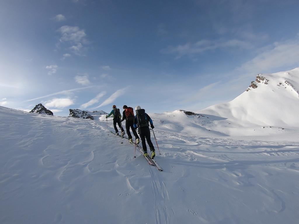 In discesa noi abbiamo attraversato a dx prendendo un bellissimo canalone di neve variabile dura e/o farinosa.