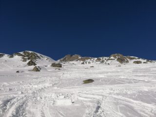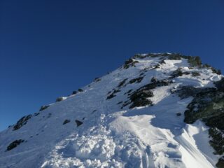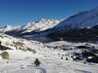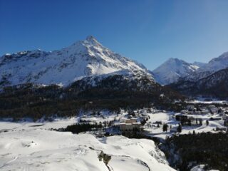 3 stelle per la media tra bellezza dell’ambiente [5 stelle] e la neve [massimo 2.5]. Vento moderato già dalla partenza e traccia ricoperta dalla neve riportata. Sastrugi in formazione ovunque. Traccia comunque evidente fino alla cima del Piz dal Sasc, molto più semplice e sicuro del Lunghin. Dopo aver spellato scendo fino all’incrocio dove parte la via per il deposito sci del Lunghin. Salgo a debita distanza da alcuni local che tracciano e con 4 inversioni siamo su. Calzati i ramponi [a mio avviso necessari] si sale in cima su facile pendio, max 40°. I locals salgono molto più a sinistra rispetto alla cresta, boh. Li ho seguiti e ok. Alcuni di loro si buttano giù dalla cima verso la parete SE, complimenti e che coraggio… Non scendo [come tutti, d’altronde] il pendio di salita ma molto più a destra faccia a valle. Trovo neve ventata ma più sicura. Più sotto un misto di croste da vento, Sastrugi, polverella; migliorerà nei tratti pistati degli ultimi 200 m. Meraviglioso sciare vista paese innevato. Tanta gente in giro.