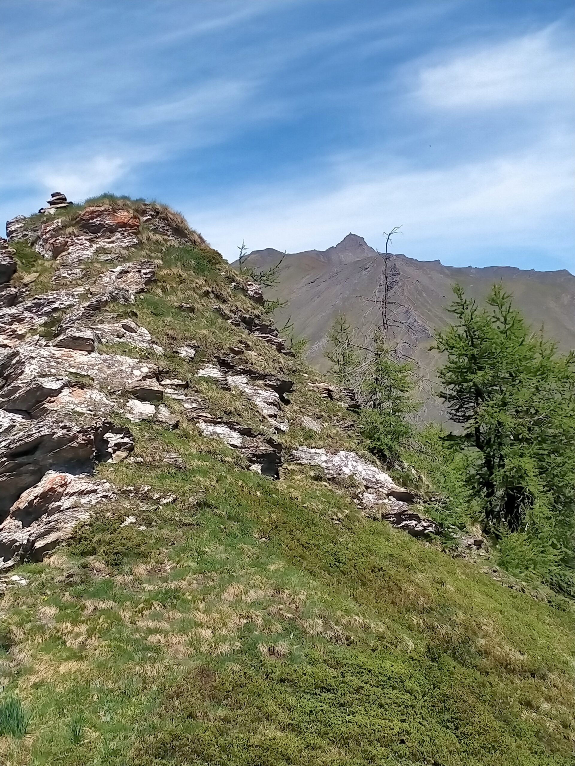 Senza scendere verso la val troncea si gira a sinistra e seguendo i rari ometti sulla pietrai si giunge all affilata crestina sommitale del Lungin. Senza grosse difficoltà si raggiunge il punto più elevato ove è posto un grosso ometto che segna la cima.