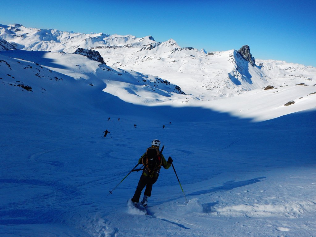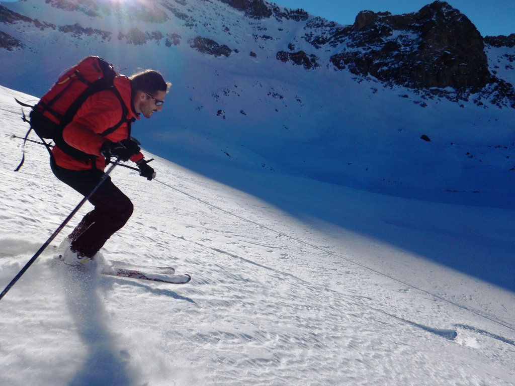 Saliti sotto lo strato di nebbia alta, che abbiamo forato solo a q. 2600 uscendo dal breve canale di sx. che dal lac Bleu sbuca sul pianoro dei Longet. Di qui, volgendo a sx., risalito i bellissimi dossi che conducono alla base dell’evidente, ampio versante ovest della Cima del Lupo, sempre con panorami unici sul Salza e sul mare di nebbie a valle. Discesa polverosa e intonsa sino a q. 2400, poi neve più impegnativa sino al bosco, dove diviene assai dura. Rientro per Pian Vasserot, con la sorpresa della strada sgomberata dalla neve, in giornata, sino a Chianale.