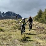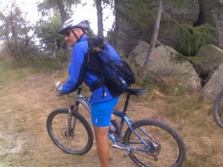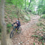 Discesa: Da Pian del Lupo si ritorna al bivio precedente, seguendo indicazioni “laghetto”, che si raggiunge con percorso quasi pianeggiante (18,32). Si deve tralasciare la sterrata che prosegue dritta, per proseguire subito prima del laghetto a destra, compiendo alcuni tornanti ripidi in discesa con fondo piuttosto dissestato. Si incrocia poi una carrareccia (21,98) che andra’ seguita a sinistra, in discesa con un tratto più tecnico e divertente, e poi con un lungo saliscendi (alcuni strappi brevi ma impegnativi si arriva a Castellazzo di Barge (24,35) ottimo punto panoramico sulla Valle Infernotto. La sterrata prosegue in piano o in lieve discesa ancora a mezzacosta fino al bivio (25,70) dove si imbocca lo sterrato di sinistra, tratto molto ripido e sassoso, che con un paio di tornanti conduce al bel Rifugio Forestale Infernotto (26,35). Si continua a scendere seguendo dall’alto il corso del torrente (passaggi suggestivi) senza possibilità di errore sul versante idrografico destro fino al Ponte dell’Ula (30,00) che si attraversa, e la sterrata diventa migliore e poco dopo lascia spazio all’asfalto, che riconduce a Barge (35,00)