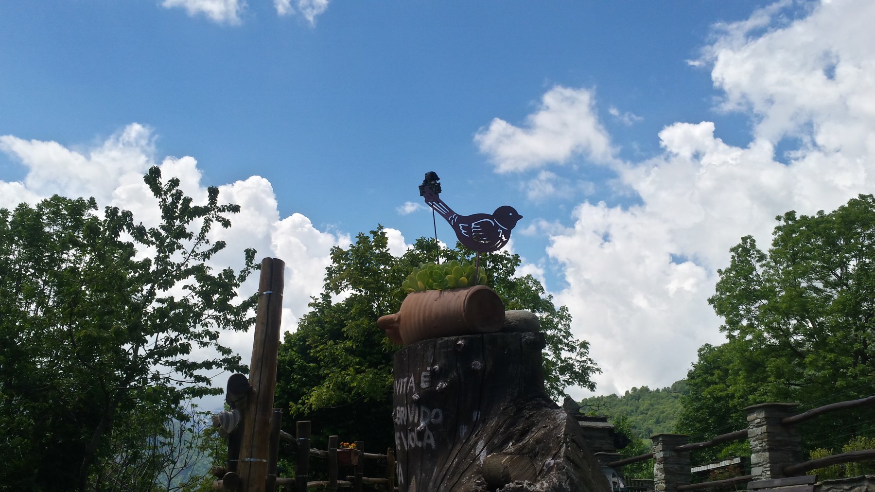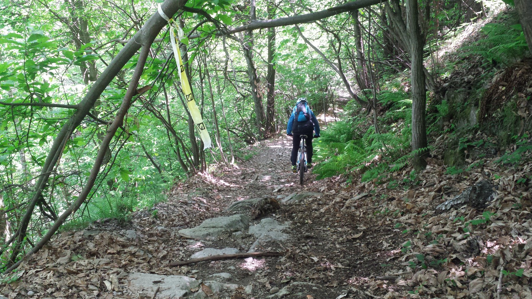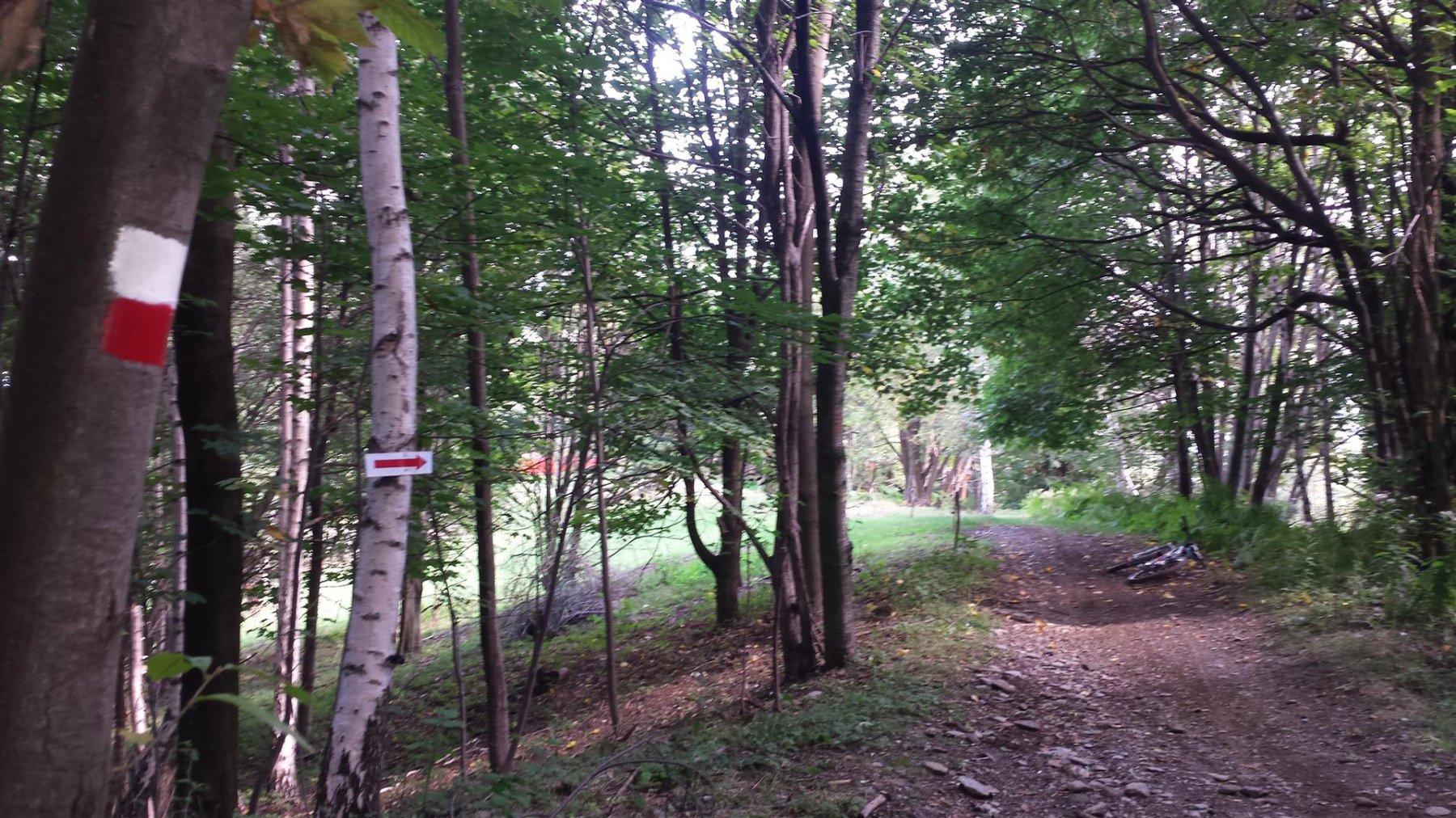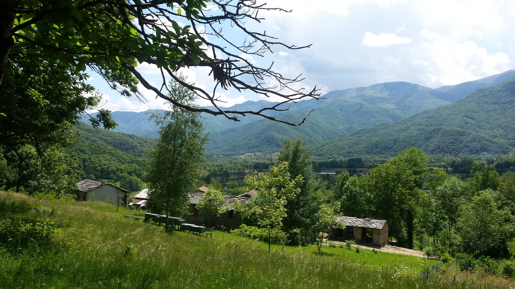 1) Chi non ha più tempo o voglia può deviare a destra ed in mezzo alle case parte un ampio sentiero (segnalato da tacche rosso/bianche e azzurre) che entra nel bosco e che, sempre con dolci pendenze su bel fondo terroso, scende a S. Grato e da li come il punto 2).