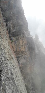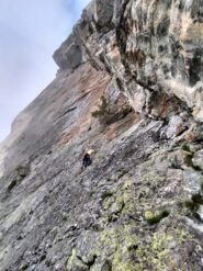 Discesa: da L5 scendere 20 metri fino a una sosta a spit, 55 metri portano ad un’altra sosta che porta a terra in 30 metri.
