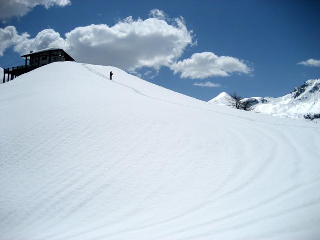 Ho messo solo tre asterischi perchè mai , e sottolineo mai, ho provato una sensazione di pericolo come oggi nel fare questa salita solitamente facile e non pericolosa.La neve inizia praticamente dall’arrivo della seggiovia,era marcia e quindi molto pesante per tracciare la pista.Solo nella parte terminale si riusciva a non sprofondare.Dovevamo salire il torrione di Lagoscuro, ma quando guarderete la foto allegata capirete perchè abbiamo ridimensionato la meta della nostra gita.Ci siamo fermati al rifugio Karfen perchè la crestina era insidiosa,infatti cosa che ho visto per la prima volta in 20 anni che vengo da queste parti,in settimana si è staccata una valanga dalla punta ed è arrivata quasi fino alla seggiovia!!Poi il versante per l’aggiramento era invece veramente poco sicuro e quindi abbiamo desistito.Forse pecchiamo di eccessiva prudenza, ma le disgrazie di questi giorni ci confermano che abbiamo fatto bene.