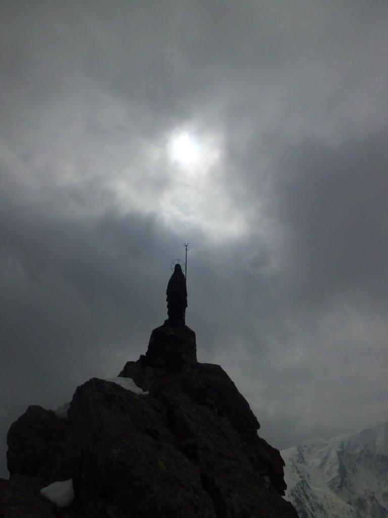 Viste le condizioni meteo e la voglia, comunque, di pestare un po’ di neve, ho pensato di sfruttare gli impianti chiusi di Ala. Le ciaspole si calzano alla partenza dello skilift del Karfen e seguendo la pista si cammina abbastanza bene: fuori neve assolutamente marcia e ancora in grande quantità. Prendere le “scurse”, come ho fatto io, vuol dire sudare sette camicie. Cielo coperto, temperatura alta (nessun minimo rigelo) e panorama parzialmente rovinato … però l’importante è esserci! Con Luna.