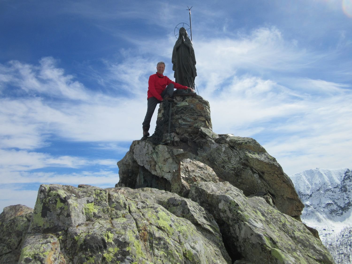 Bellissima giornata anche piuttosto calda per la stagione. Vista questa escursione su gulliver (grazie Laika58 per l’idea). Calzate le ciaspole a circa 1400 m. e saliti sulla pista, con tratto molto ripido, per evitare di sprofondare vista la poca tenuta della neve fuori pista. Arrivati in vetta risalite le roccette per la foto con la Madonna posta in punta. Bellissimo il panorama dalla cima. Poco più sotto si trova il rifugio Karfen attualmente in cattivo stato di manutenzione. In compagnia di Giorgio. Non incontrato anima viva.