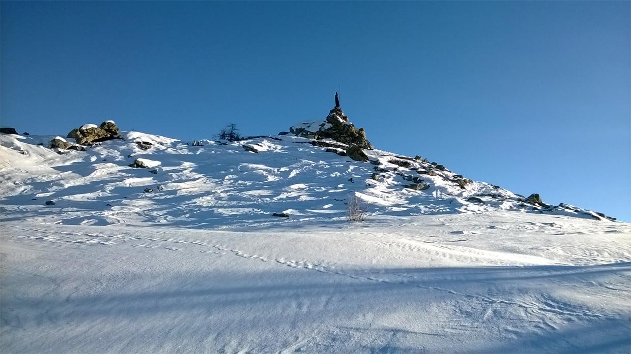 Dal parcheggio della seggiovia si attraversa il ponte e si sale lungo la strada sterrata che passa in un sottobosco fino alla loc. Belfe’. Si attraversa verso sx. lo skilift e ci si inoltra nel bosco, seguendo le tracce della mulattiera fino a raggiungere l’alpe Longimala q.1406.Di qui per bosco (cartelli indicatori)toccando l’alpe Ciapile q.1633, poi per ampie radure,l’alpe Vallone q.1803. Si sale in direzione Nord fino al colle del vallone dal quale si gode uno splendido panorama. Quindi per cresta verso dx. si raggiunge la punta Lusignetto, sormontata da una statua della Madonna.
