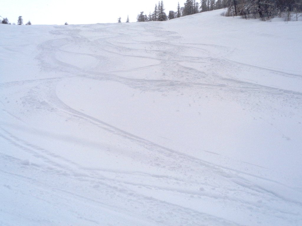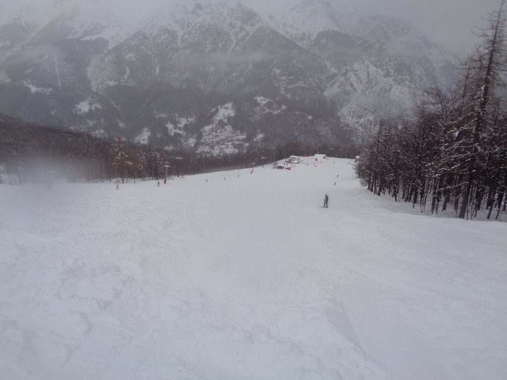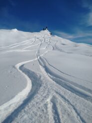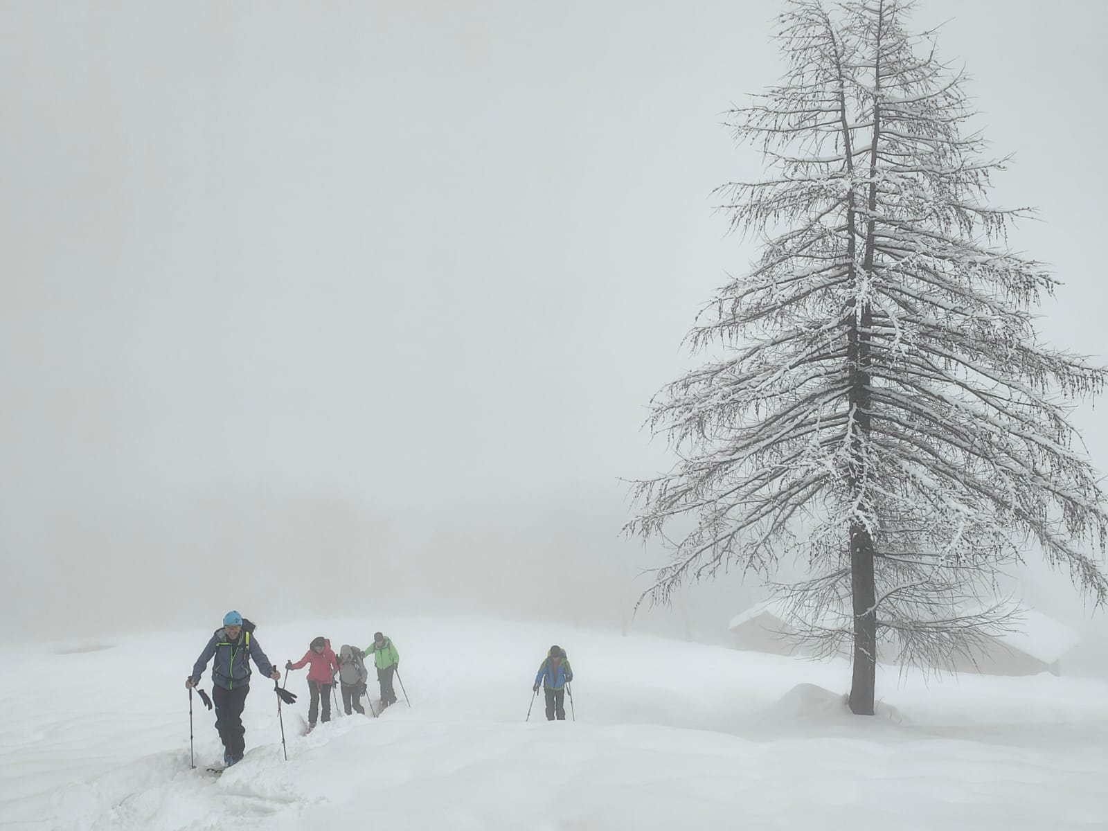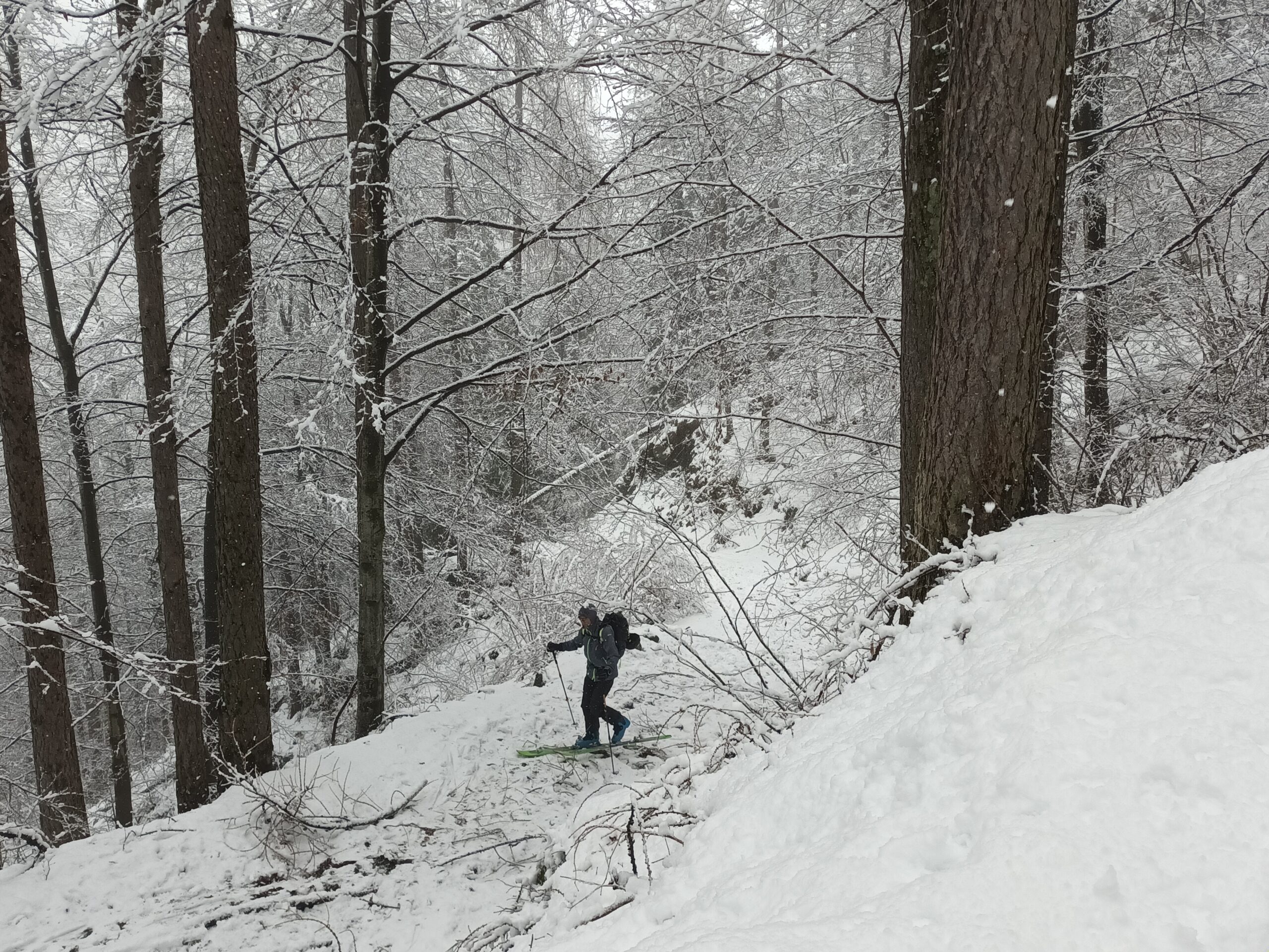 La discesa seguendo l’itinerario di salita è sconsigliato in quanto problematico nella parte bassa coperta da una fitta vegetazione boschiva.Preferire dunque la discesa lungo le piste fino a ricongiungersi con l’itinerario di salita a quota 1250m circa.