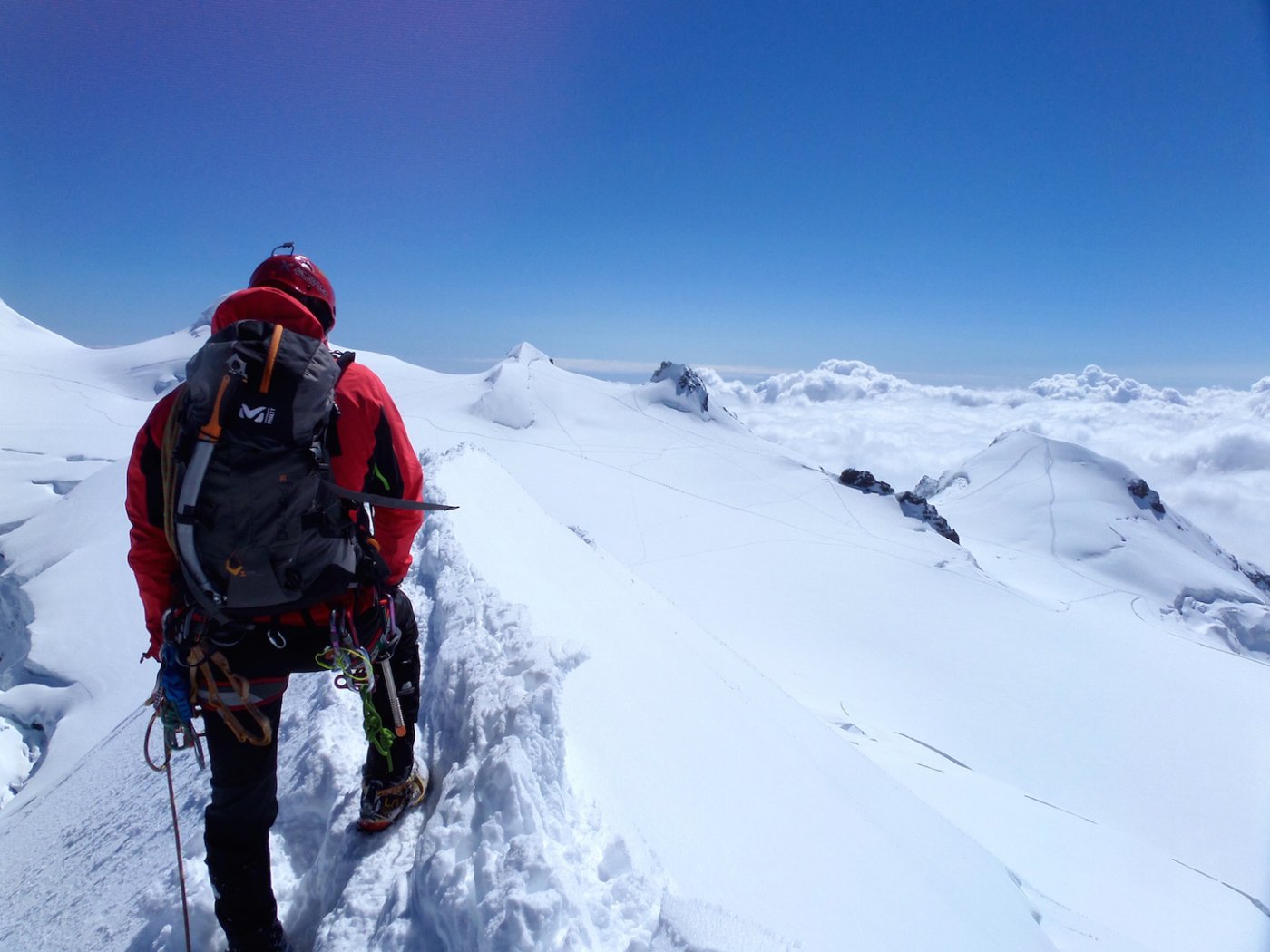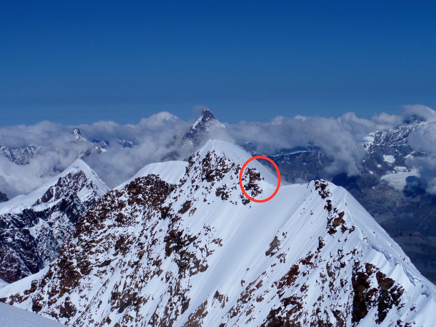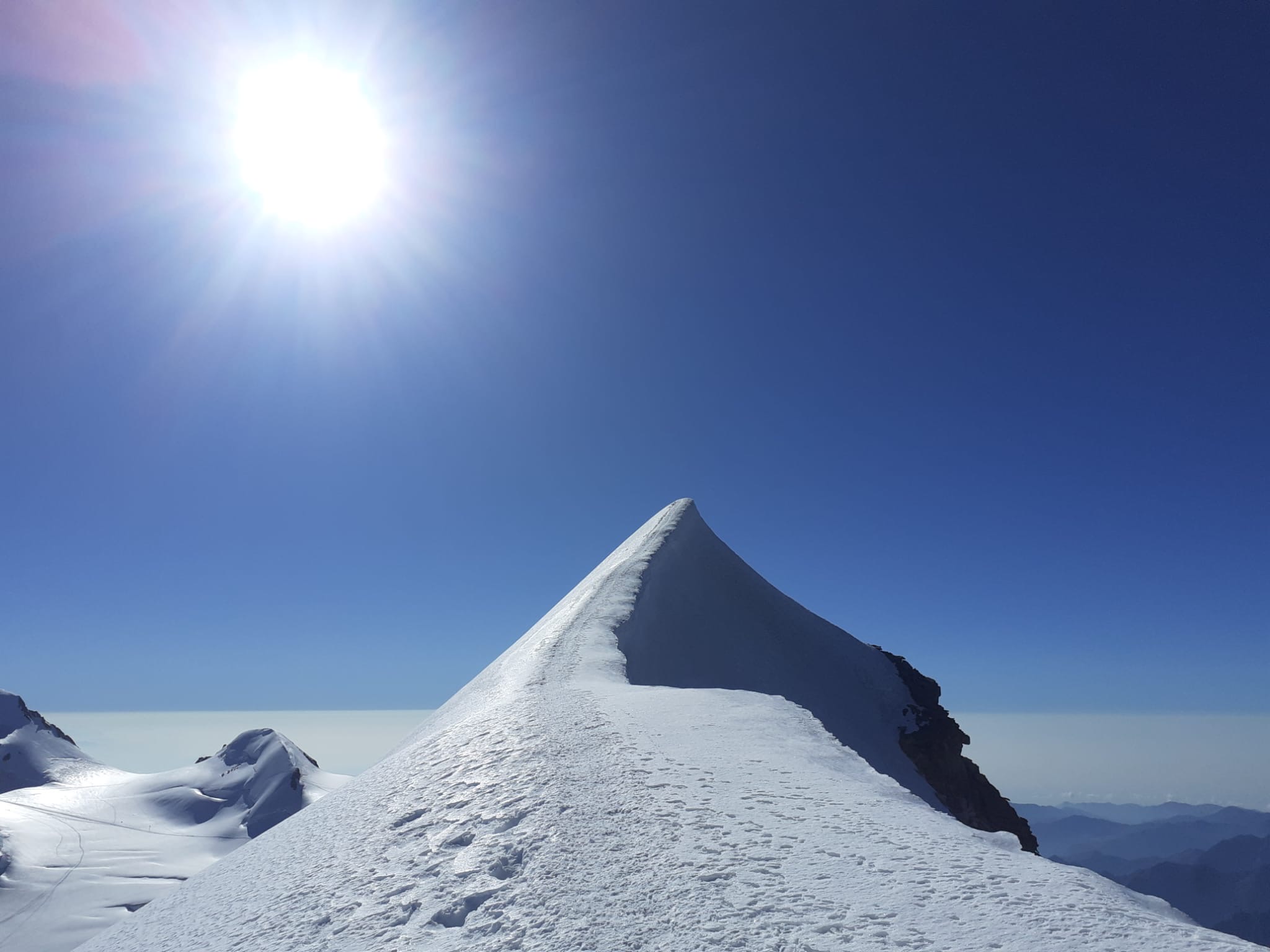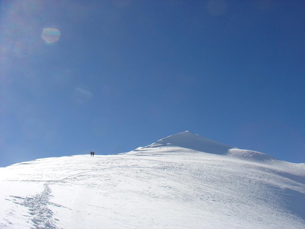 Dalla quota 4448 si riprende a salire per neve fino alla vetta orientale 4527.