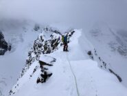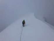 Si sale a seconda delle condizioni nella parte più facile, dalla vetta si prosegue in discesa per una facile cresta a tratti rocciosa.
