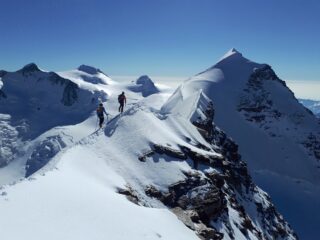 La traversata tra le due cime è in buone condizioni, ma con le rocce innevate in cui prestare attenzione.