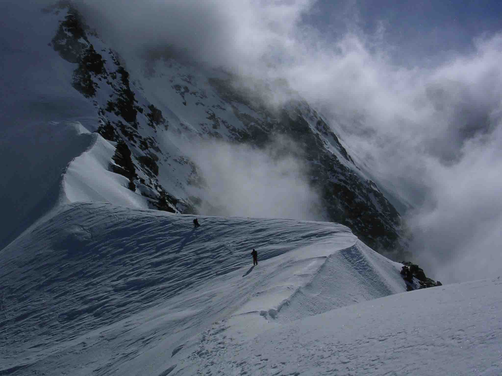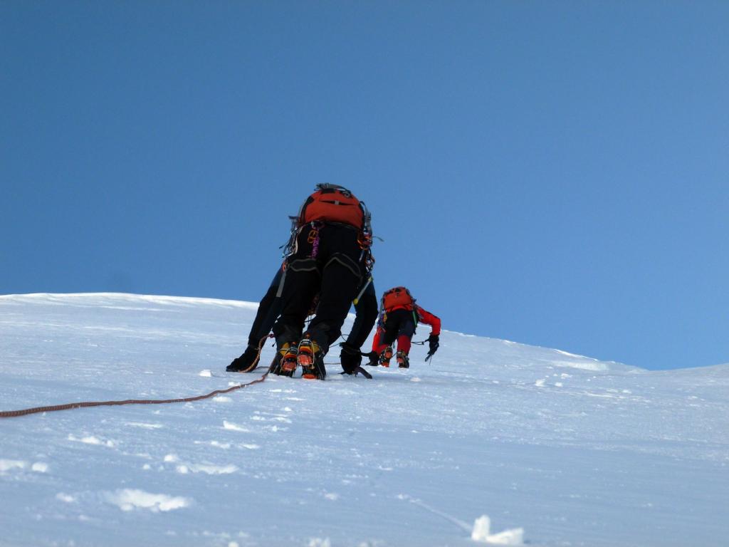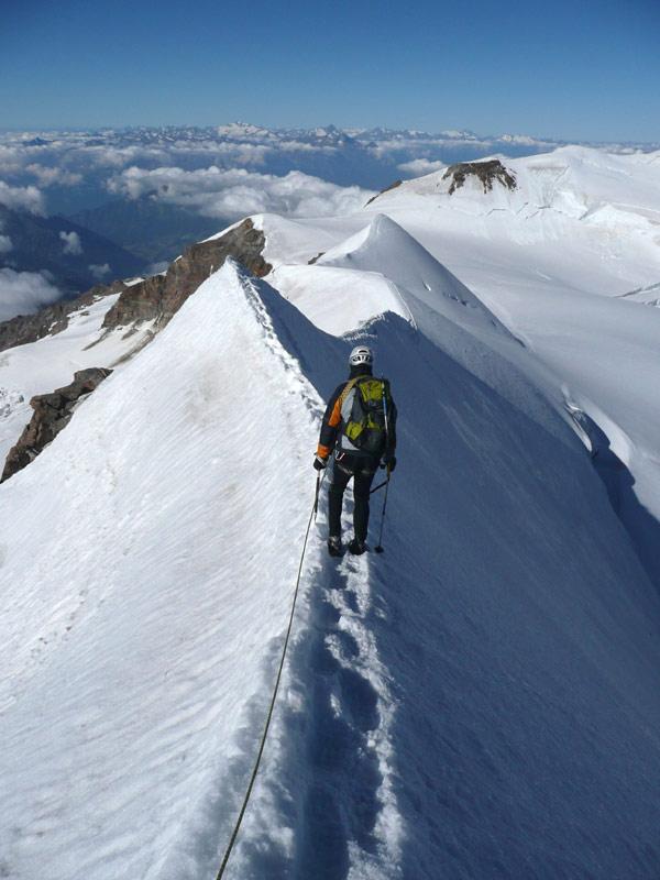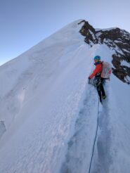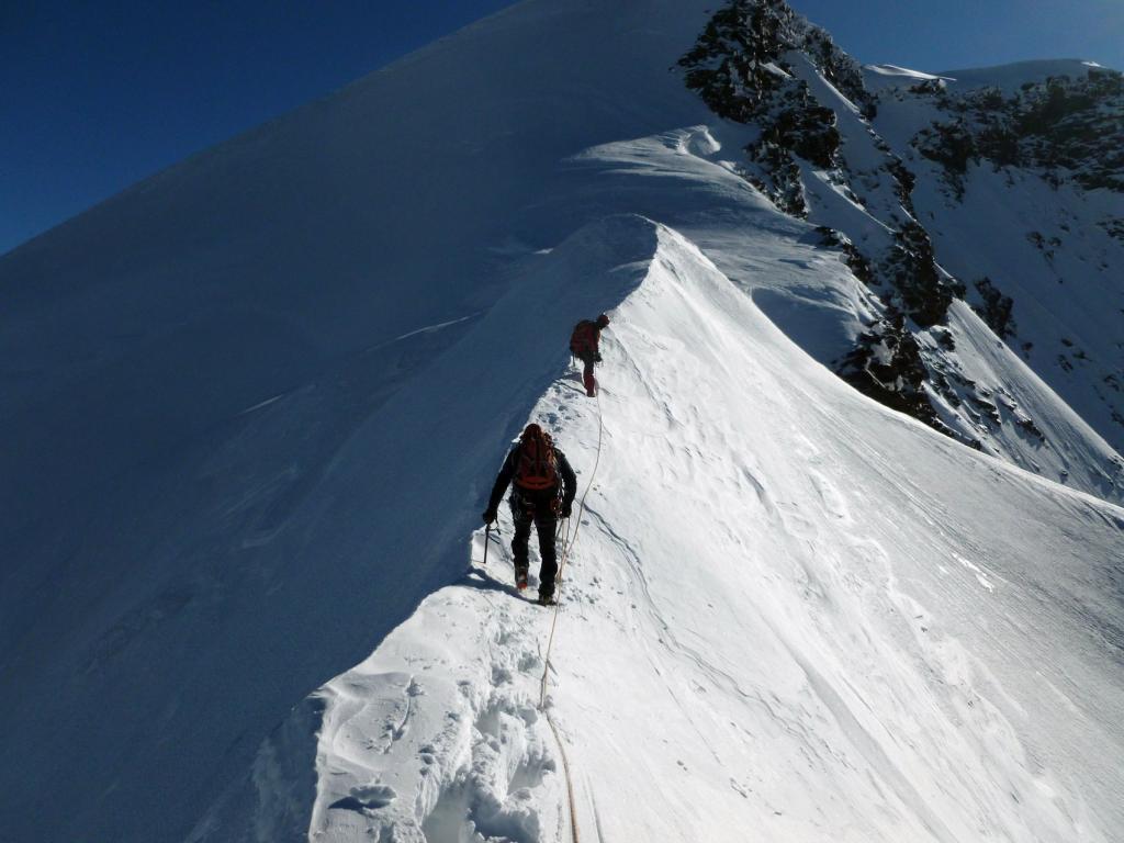 Si segue la cresta affilata e piana (solitamente senza cornici) finchè diventa improvvisamente ripida.