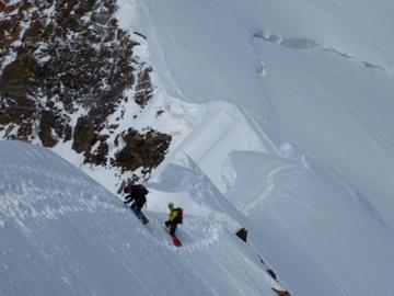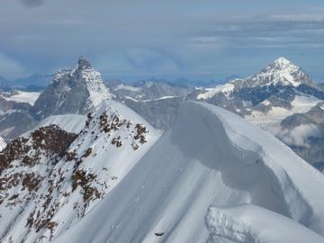 Condizioni eccellenti su tutta la cresta, giornata fredda e con molto vento, presente ottima traccia. Dieci giorni fa andai a dormire al bivacco del blamenhorn, in condizioni pietose, patii la quota e ripiegai sulla piramide Vincent. Ho colto lultima giornata di apertura degli impianti, pernottando alla Gniffetti per salire questo elegante montarozzo. Avendo lasciato purtroppo un paio di cose al rifugio non ho proseguito verso la cima ovest … Molta gente in giro, avvicinamento semplice su ghiacciaio con crepacci ben chiusi.
