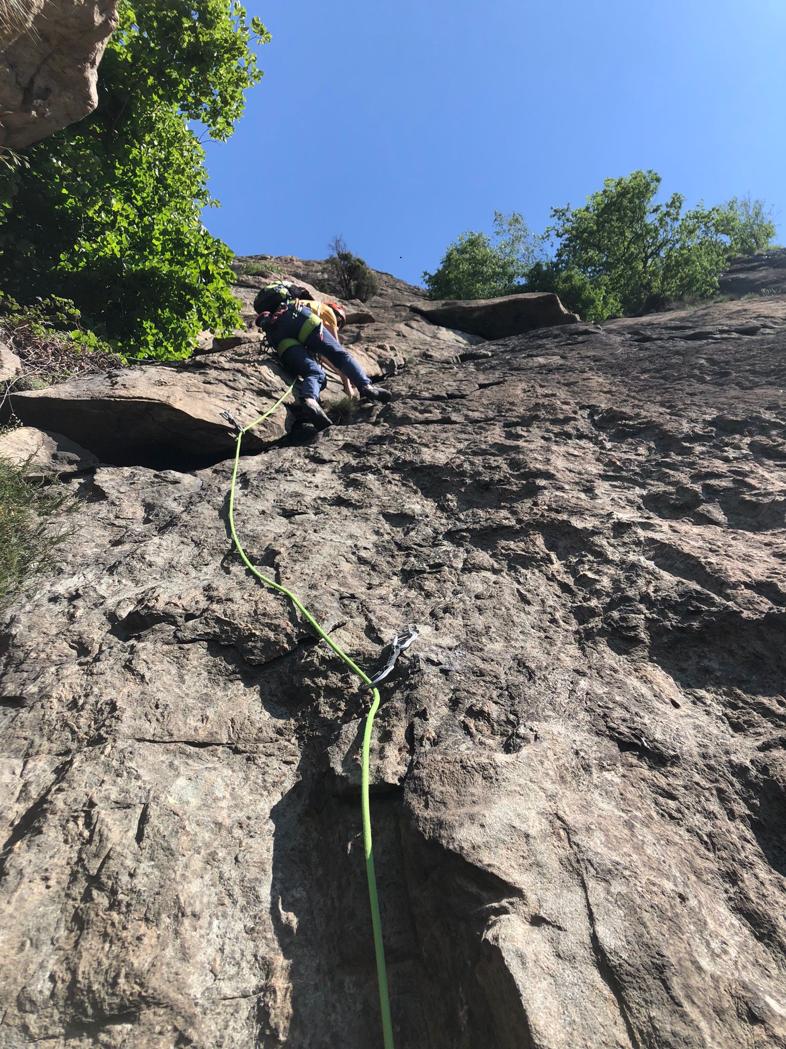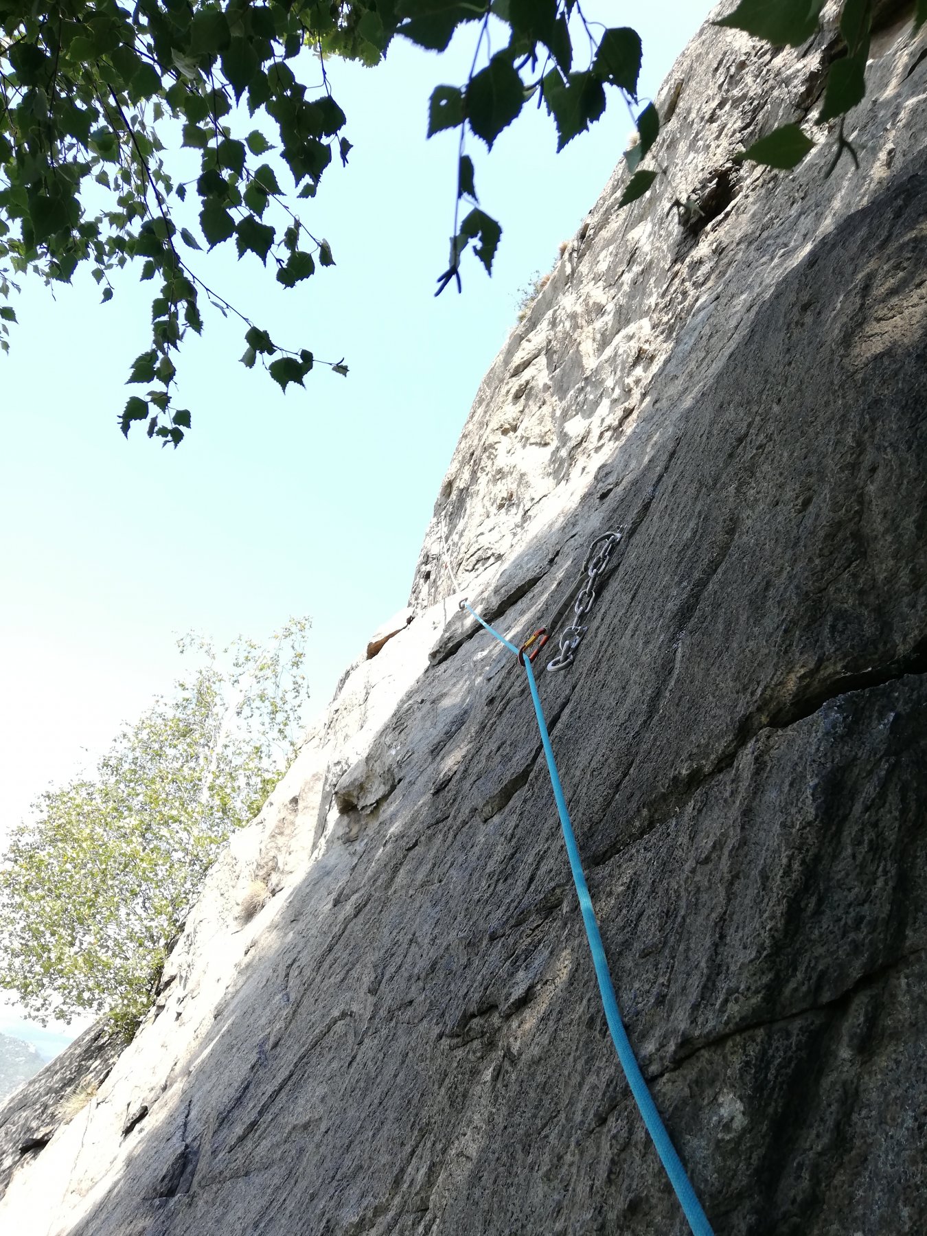 - L4 strapiombino fessurato a destra della sosta poi si prosegue su placca 40m – 5b