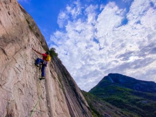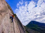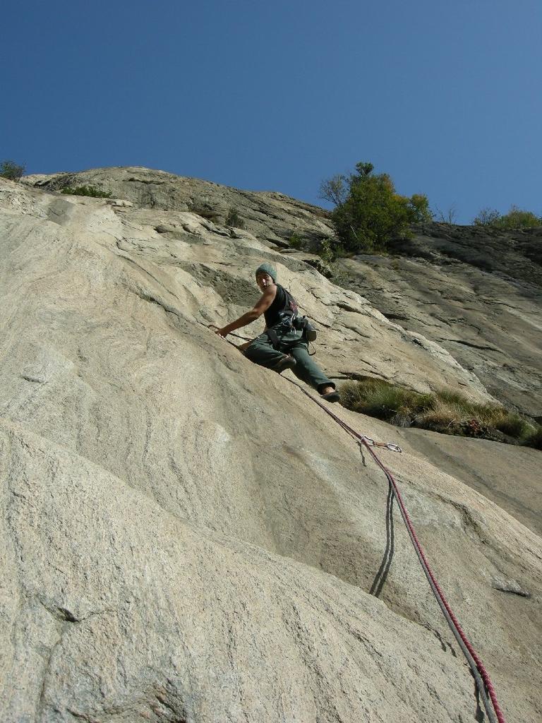 - L1 – (6a+) ‘dolce’ risveglio alla partenza con un paio di passaggi di spalmo, poi incrocia la diretta al banano passando alla sua destra.