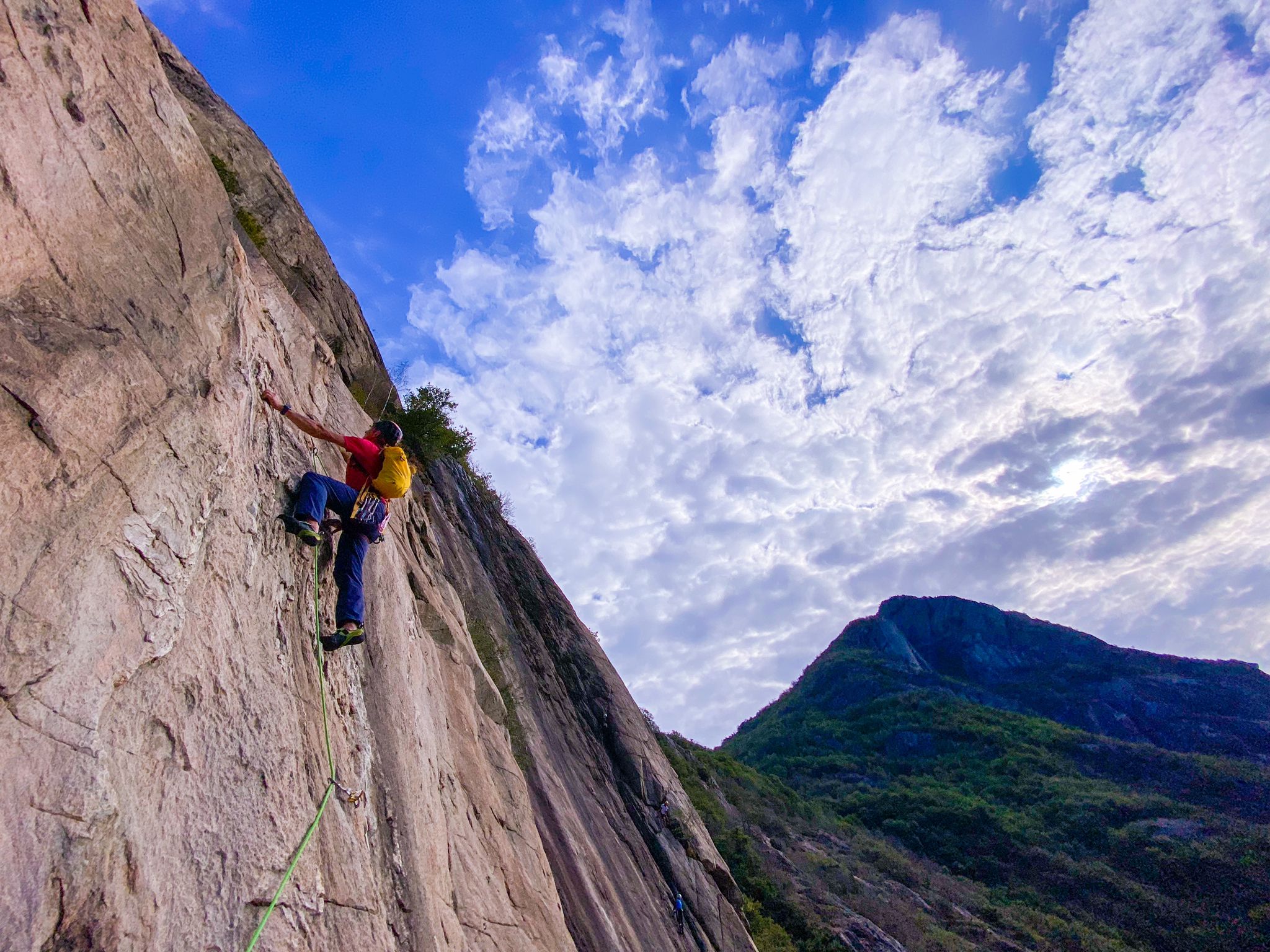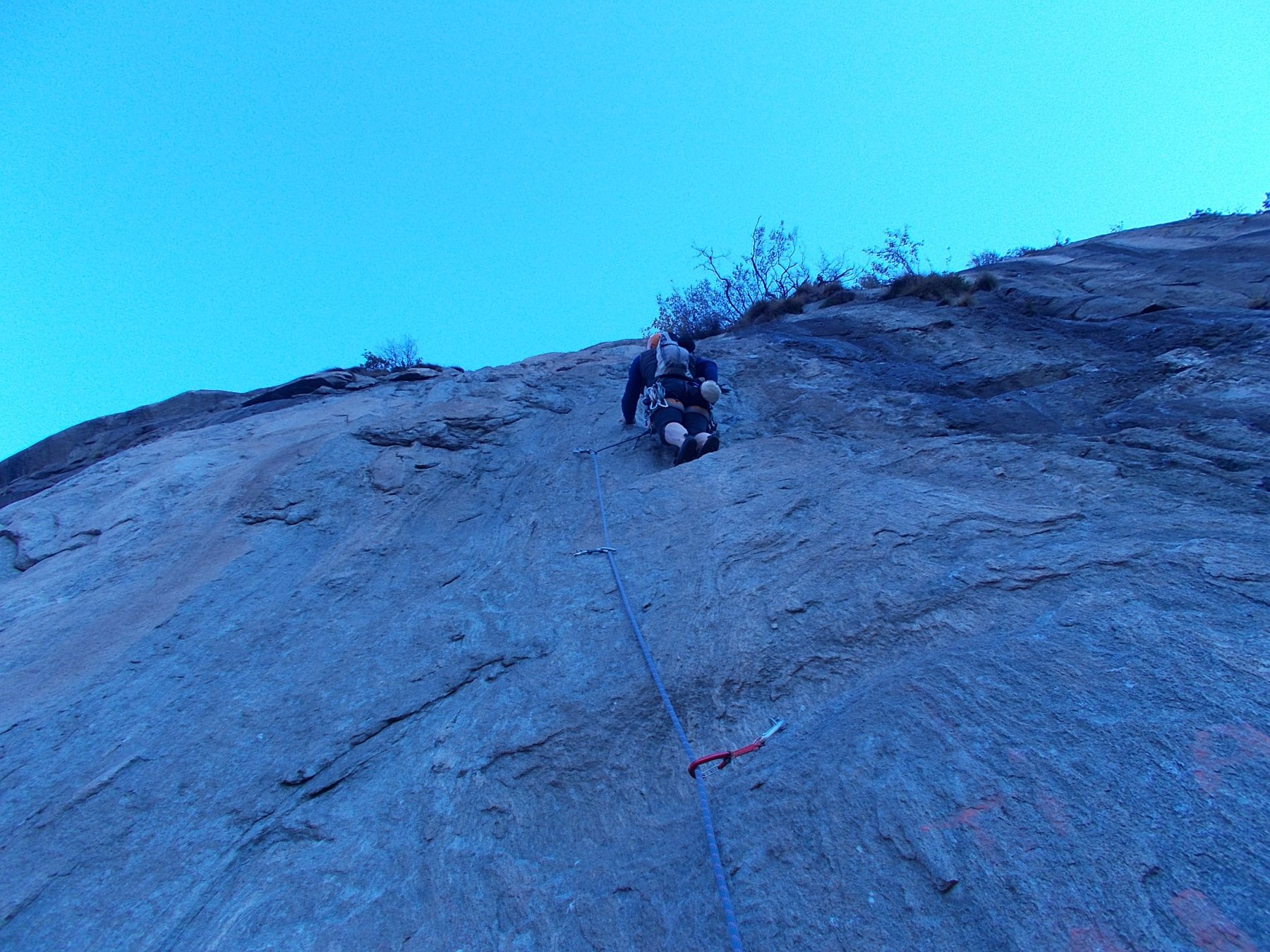 da qui volendo si può uscire per la divertente variante del Galion (6a+, 4b, 4a) oppure seguire verso sinistra per l’uscita dei Anchorage: