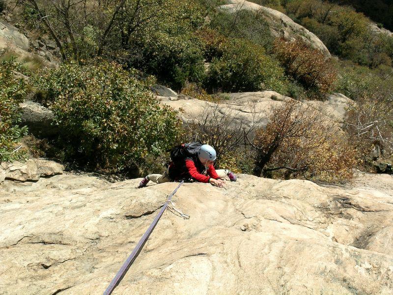 - L5 : 6a Placca con fessura diagonale di strana impostazione e ribaltamento su uno spigolo arrotondato, tiro apparentemente più facile di 6a.