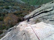 - L1: 6a, tiro lungo e piuttosto continuo con passo chiave su placca liscia con appigli esigui.