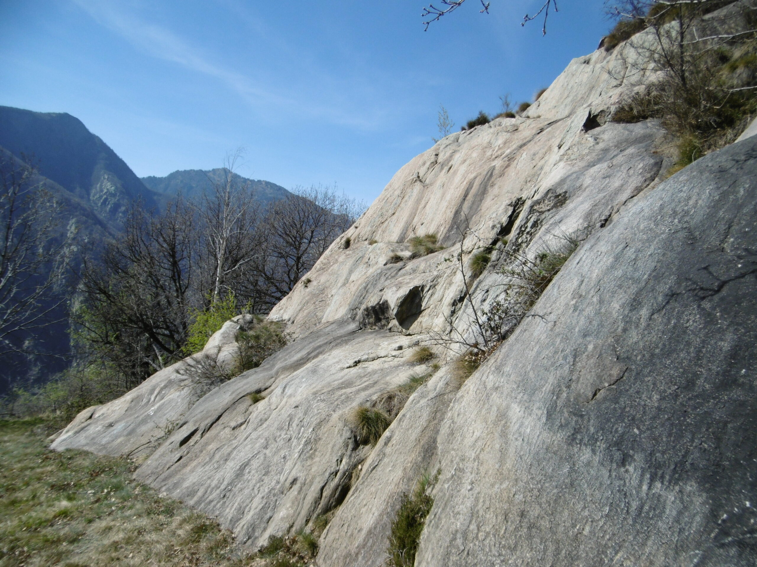 Oltrepassata la casa con la targa dei partigiani lasciare a sinistra la stradina che prosegue verso il Forte Lucini proseguendo sulla destra fino ad un gruppo di alcune vecchie costruzioni (pannello segnaletico); sul retro di queste, in vicinanza di una fontanella si stacca un’esile traccia di sentiero che sale a moderata pendenza attraverso zone erbose interrotte da macchie di querce. In alcuni punti è presente una staccionata in legno e vari ometti di pietre lasciati dagli arrampicatori. Arrivati in corrispondenza di una placca di roccia liscia con alcune vaschette da cui apre la visuale sul forte di Bard procedere diritto in direzione dell’evidente vetta indicata da un piccolo pilastrino in cemento.