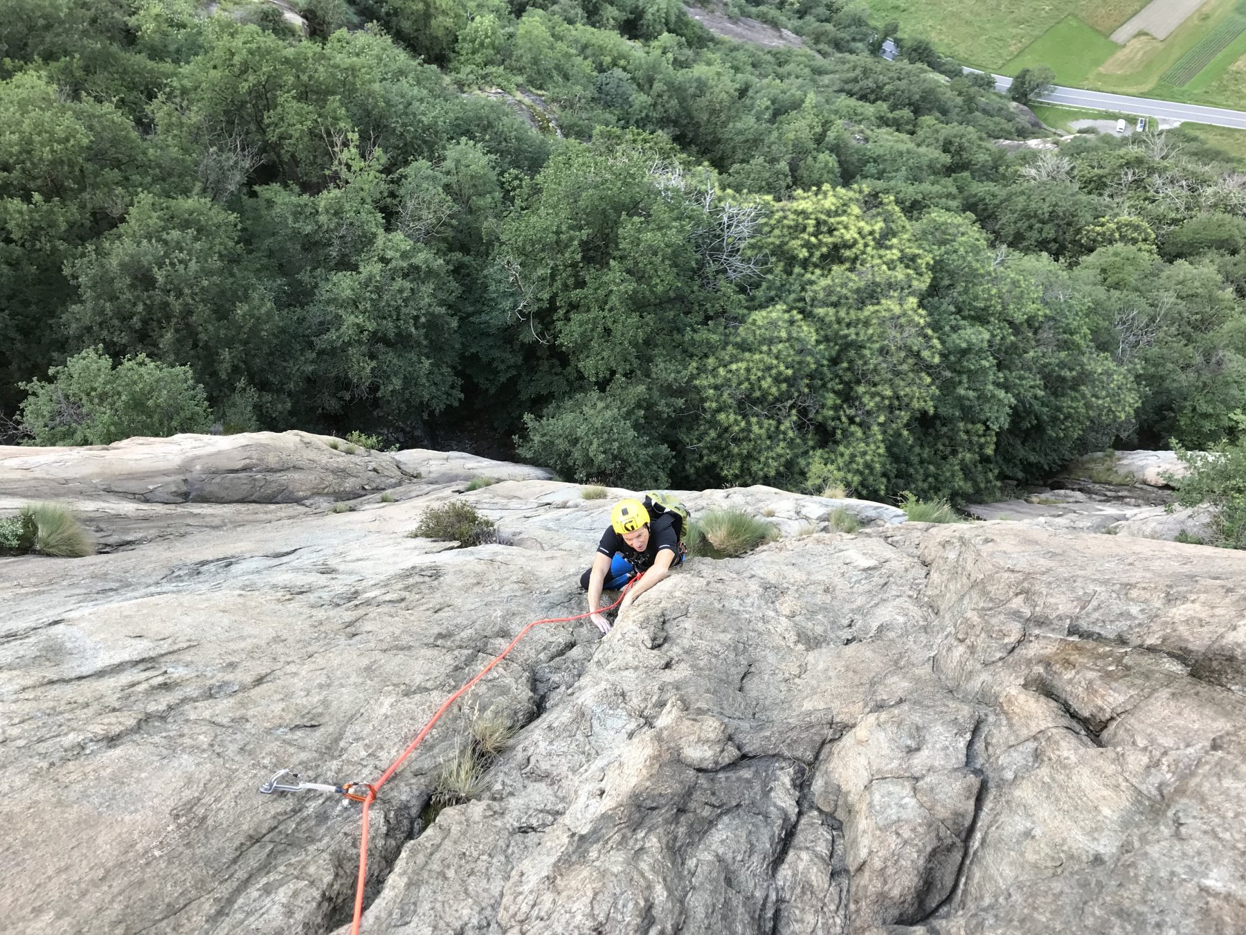 Bella via di placca, piuttosto continua e con spittatura lunga, tranne che nel primo tiro di 6b.