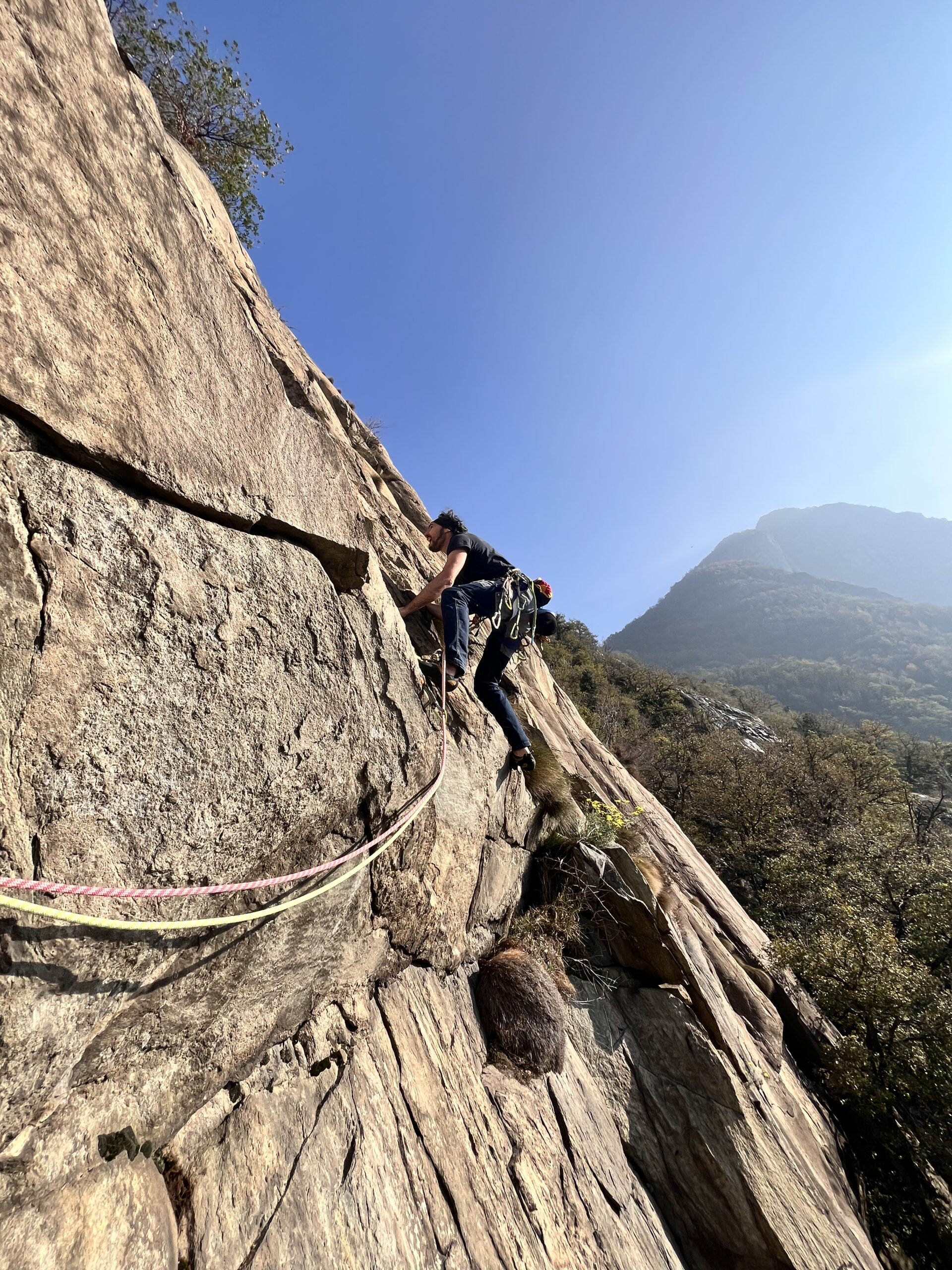 Arrivati alla cengia mediana, si può proseguire per varie possibilità (Il ritorno dello Jedi, Patata bollente, Bucce d’arancia).