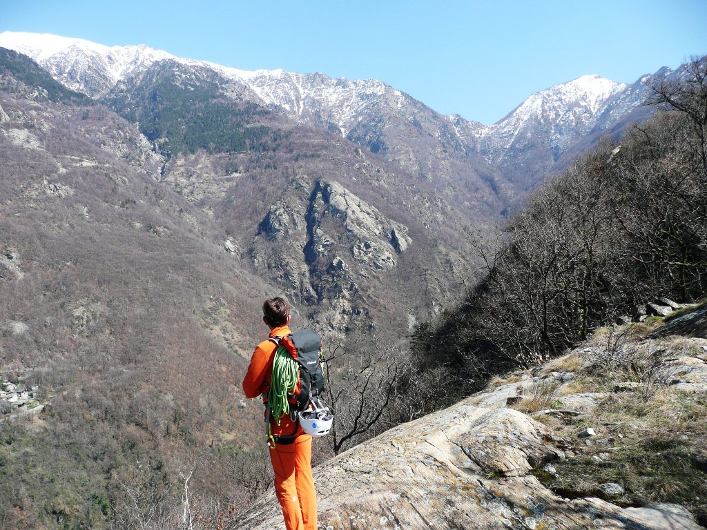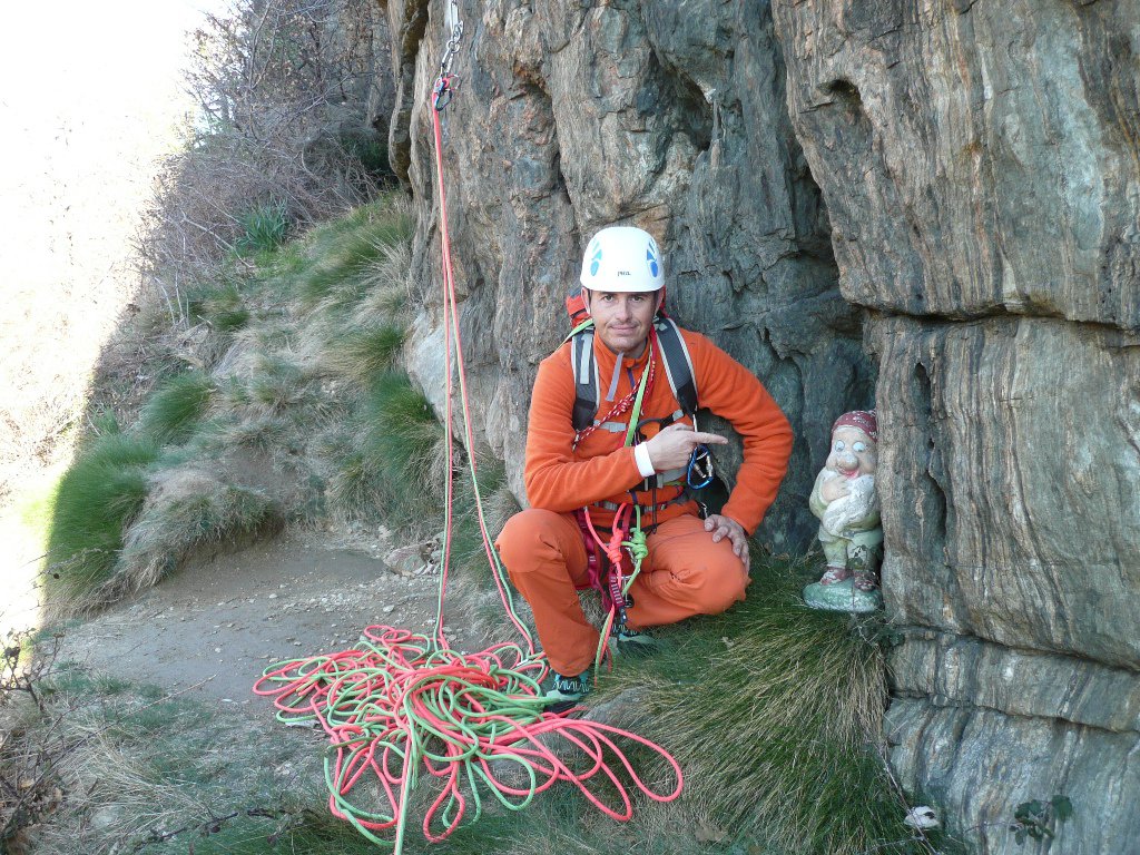 Partiti presto con i primi tiri ancora freddi e all’ombra: il saponato ed il lisciato di alcuni tratti si è fatto sentire lasciando per qualche attimo scarsa fiducia alla tenuta dei piedi. Nessun problema invece per i pochi tratti bagnati riscontrabili qua e là. Il punto più duro per noi è stato di gran lunga la placca liscia di L5 ma guardandolo bene si riesce a scantonare un po’ sui lati anche senza padroneggiare il 5b di questo breve tratto forse di un paio di metri. I tiri superiori sono di poche pretese come già detto dai precedenti salitori, vanno presi per quello che sono, un modo per salire in cima a godersi il panorama e vedere un po’ le più famose vie che hanno il loro attacco lungo il laborioso sentiero di discesa, gli stimoli per cimentarsi su alcune di esse certamente non mancano, consapevoli che quelle alla nostra portata sono al massimo un paio. Giornata mite ma a tratti ventosa. Alcune cordate dietro di noi, ma nonostante la lunga pausa, non li abbiamo visti arrivare in cima: eravamo curiosi di sentire anche le loro impressioni. A tiri alterni con Fabrizio N.A. a me i dispari. Concluso la giornata su Topo Pazzo.