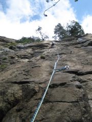 Via bella, ma parecchio lisciata dai passaggi, soprattutto nella parte centrale. L'avevo percorsa una quindicina di anni fa ed allora era sensibilmente più rugosa. Un saluto ai più giovani e soprattutto al ben più vecchio compagno di cordata!